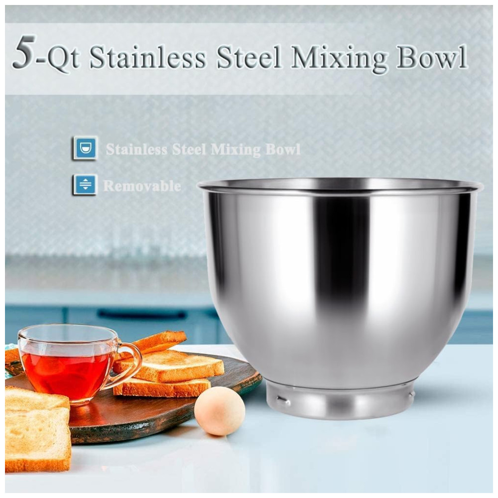 A Batedeira MURENKING possui uma tigela de capacidade de 4,7 litros para atender todas as necessidades da sua cozinha, desde assar pães, bolos, biscoitos, até muffins e muito mais. Com 6 velocidades controladas por um motor de 300 watts, você pode escolher entre misturar suavemente ou bater rapidamente. Além disso, conta com a função Pulse que atinge a velocidade máxima em um instante, ideal para bater claras em neve. Com design inclinável e base antiderrapante, 6 ventosas de silicone mantêm a batedeira estável durante o uso. Acompanha acessórios como gancho de massa, batedor plano, fouet e proteção contra respingos. Fácil de limpar.