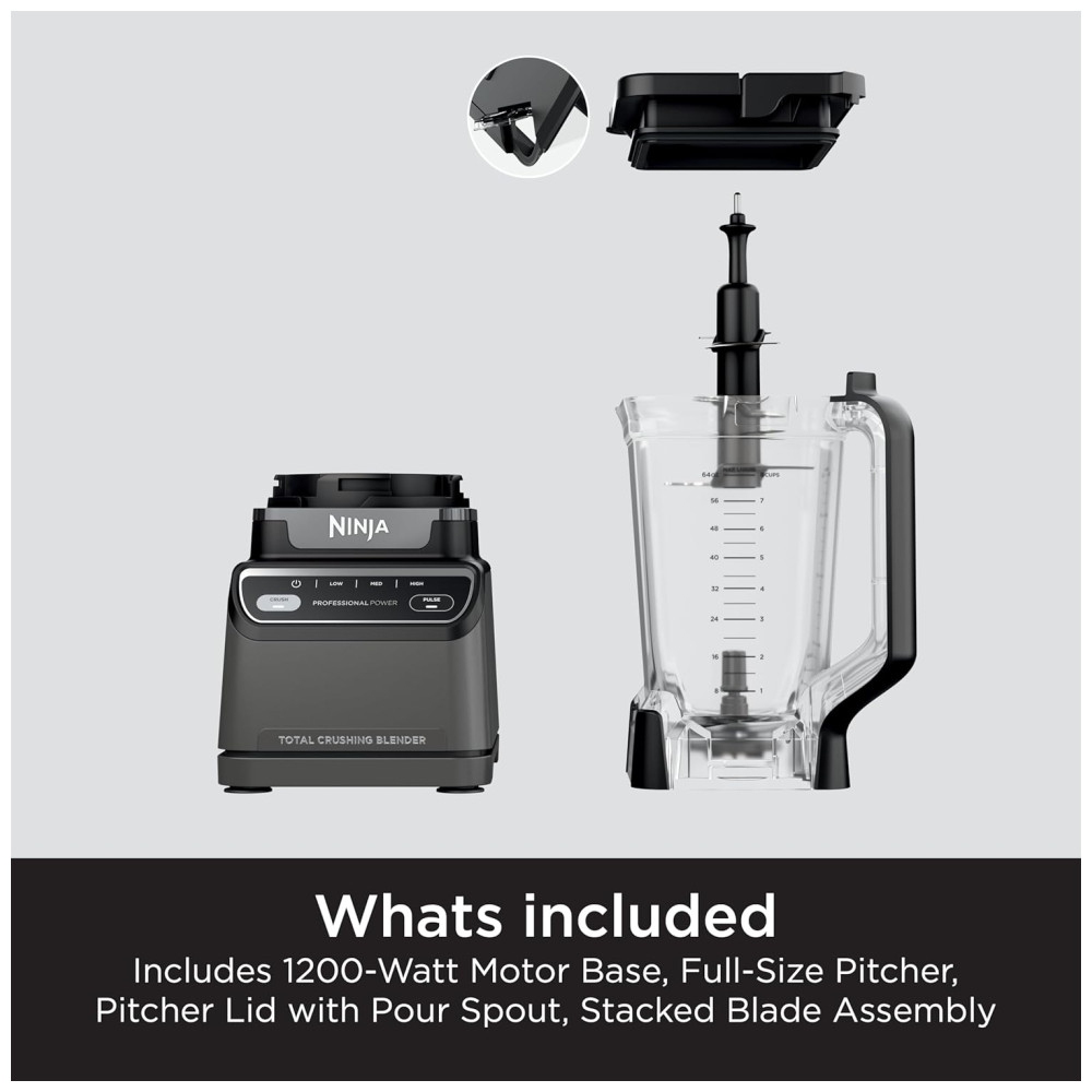 Aproveite o controle total da sua mistura com o Liquidificador Ninja Professional 2.0 BR201AMZ. Com 1200 watts de potência profissional, lâminas Total Crushing e um programa Crush AutoiQ, você pode triturar gelo em smoothies e bebidas geladas na jarra. As opções de baixa, média, alta e pulsar oferecem controle total sobre sua mistura. O motor de 1200W é capaz de lidar com os ingredientes mais difíceis. A tecnologia AutoiQ elimina a adivinhação da mistura com o programa Crush, que combina pulsos únicos cronometrados, mistura e pausas que fazem o trabalho por você. A jarra é ideal para fazer grandes lotes para toda a família. As lâminas Total Crushing do Ninja transformam gelo em neve para smoothies, shakes, bebidas geladas e muito mais. As opções de velocidade manual permitem controle total. O guia rápido de receitas incluído fornece inspiração para smoothies, sorvetes, salsas e patês.Inclui Base do Motor de 1200W, Jarra ,Total Crushing com Bico de Despejo, Conjunto de Lâminas Empilhadas, Guia Rápido de Receitas com 10 opções.