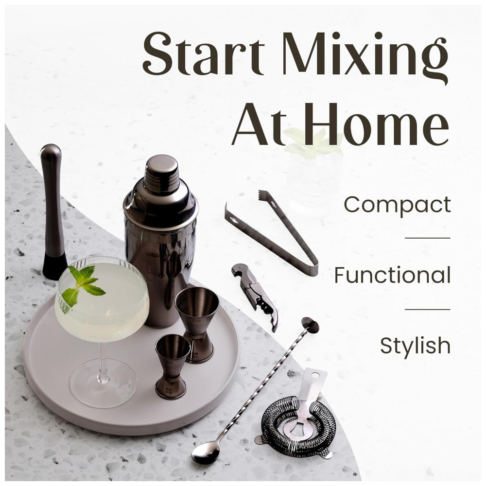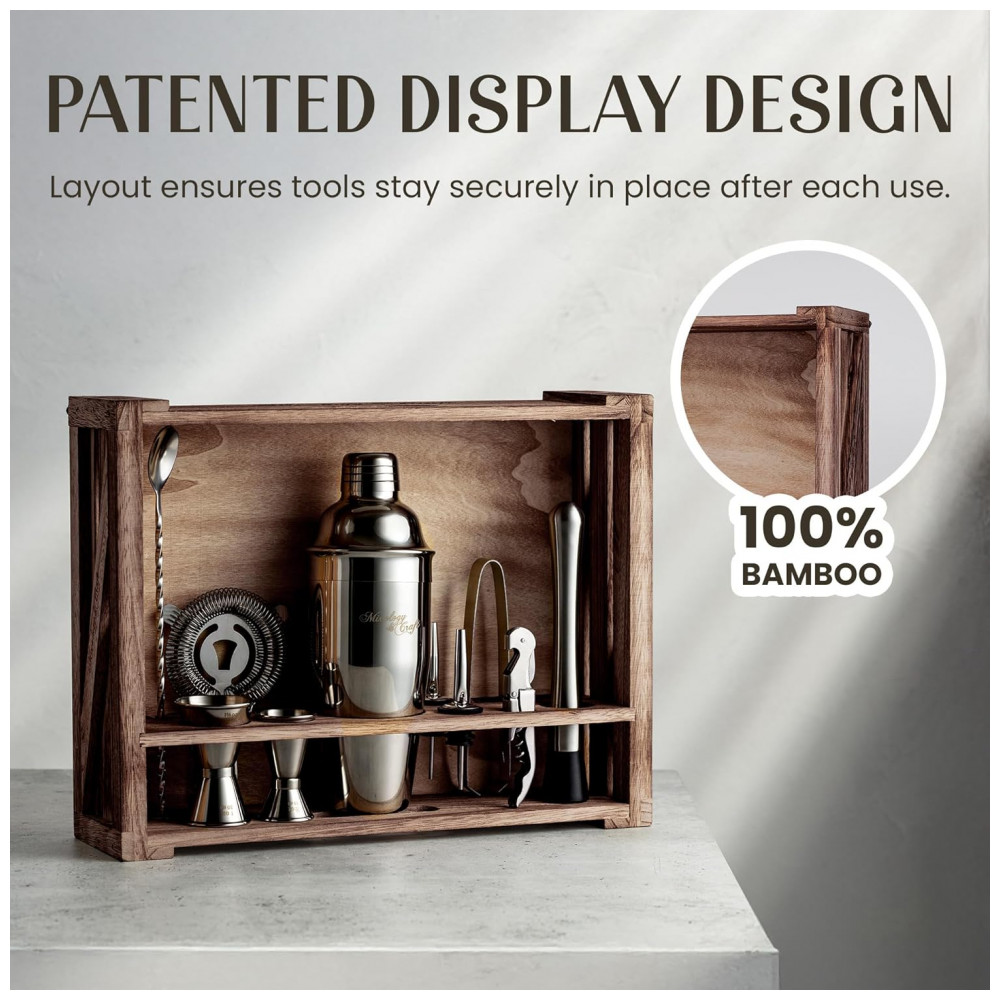 Mixology Kit Bn Profissional 11 Peças em Aço Inoxidável com Suporte Rústico