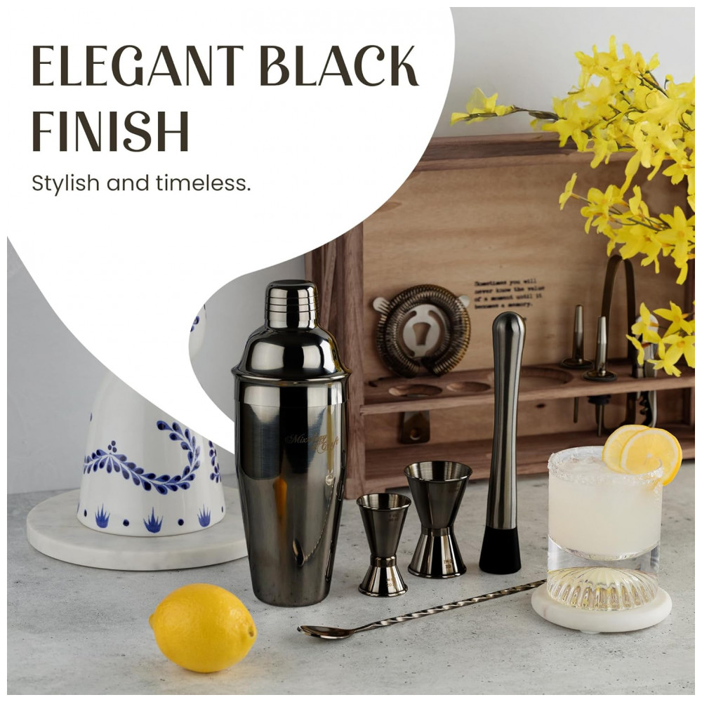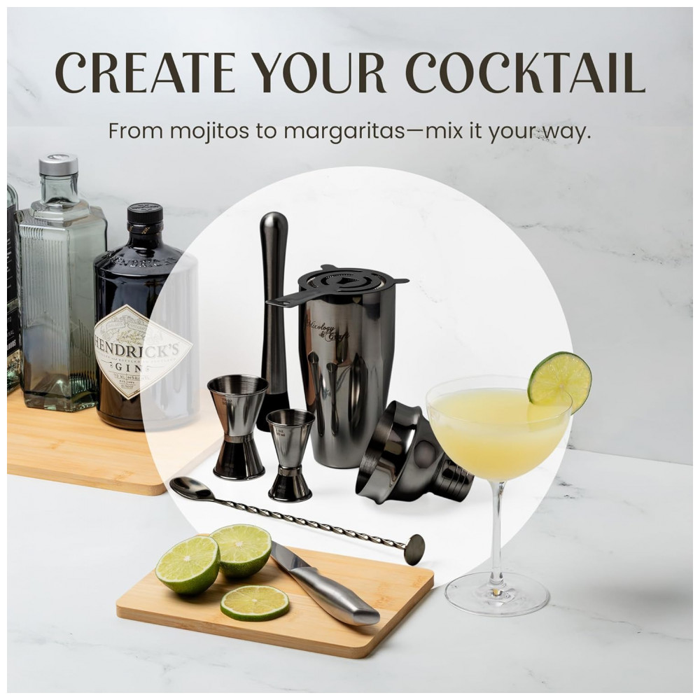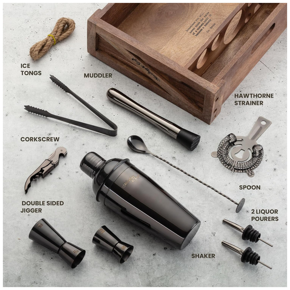 TUDO O QUE VOCÊ PRECISA EXCETO PARA O BOOZE Conjunto de bn preto TOTALMENTE INCLUÍDO de 11 peças de ferramentas de barra da prateleira superior. Dar lhe á o poder de preparar cocktails impressionantes para os seus convidados. Quer você seja um bartender amador ou um guru profissional da mistura de coquetéis, quer esteja abrindo um bar em casa ou no trabalho nosso conjunto de coquetéis pretos é uma maneira brilhante de começar a correr.