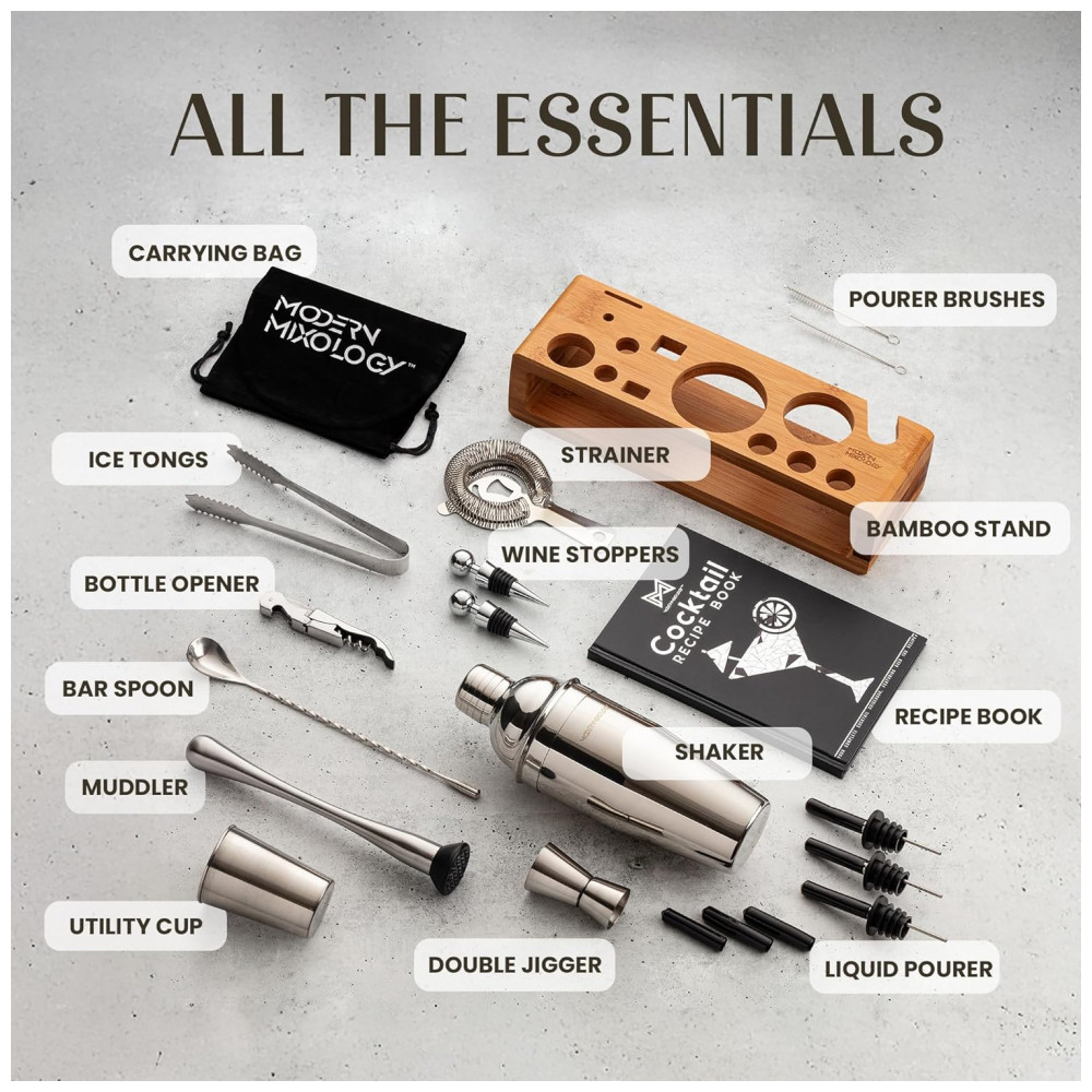 Mixology Kit Bn Profissional 23 Peças em Aço Inoxidável com Suporte e Livro de Receitas