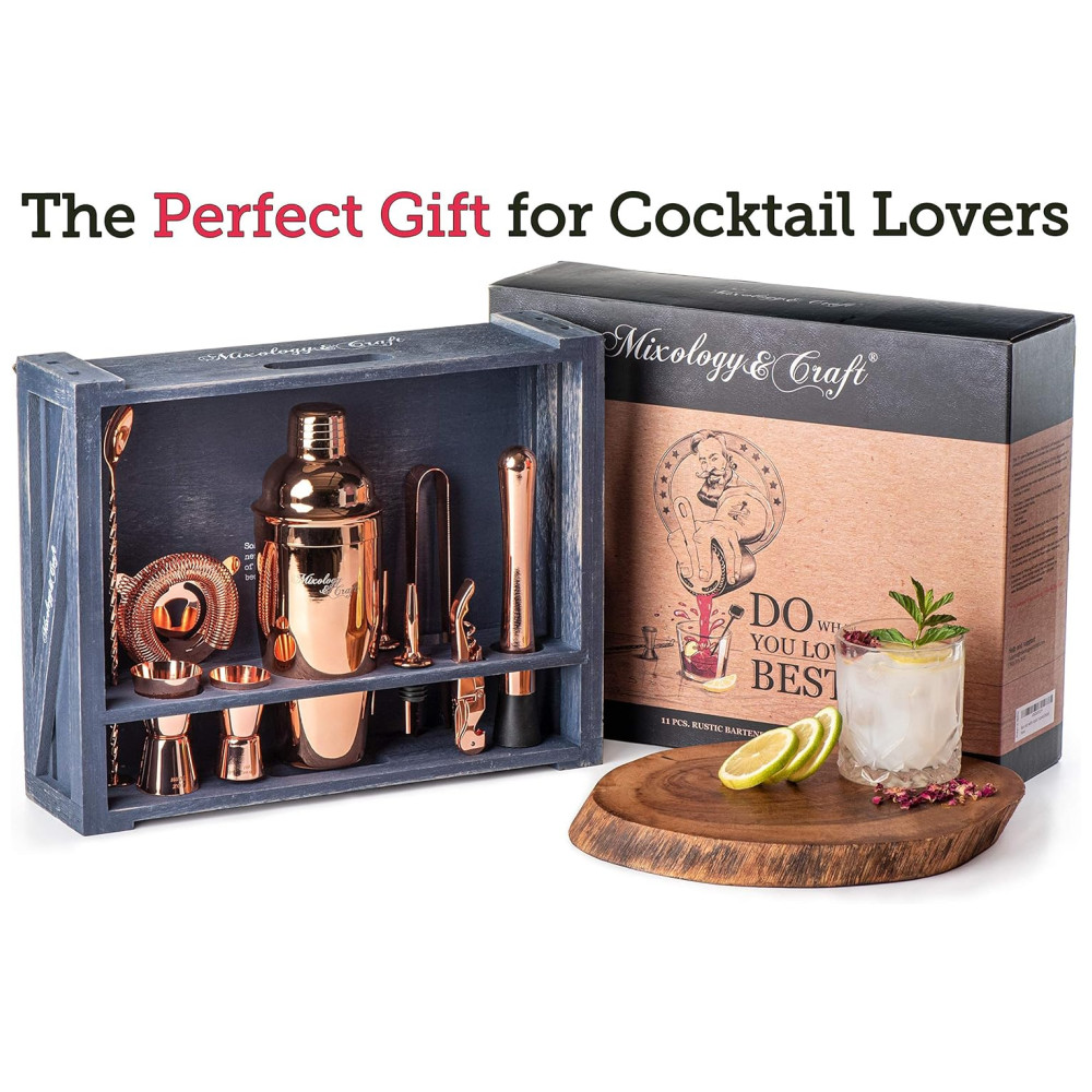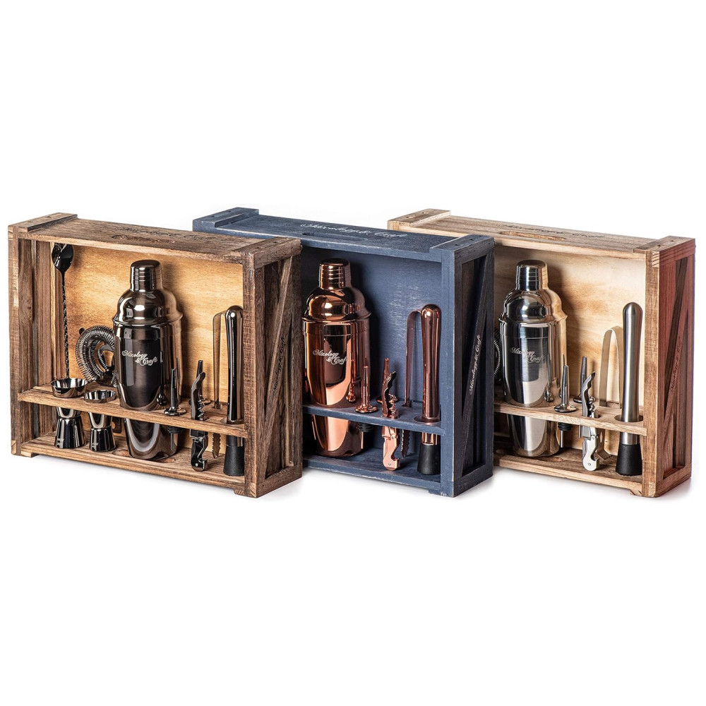 INEFICIENTEMENTE O PRESENTE PERFEITO PARA OS AMANTES DE COCKTAIL Conjunto de bn de primeira classe mais um porta ferramentas de caixa de madeira estiloso, ambos embalados em uma caixa de presente elegante. Seu destinatário ficará emocionado como uma criança em uma loja de doces. Além disso, para tornar as coisas realmente deliciosas, vamos lançar um catálogo de coquetéis online.