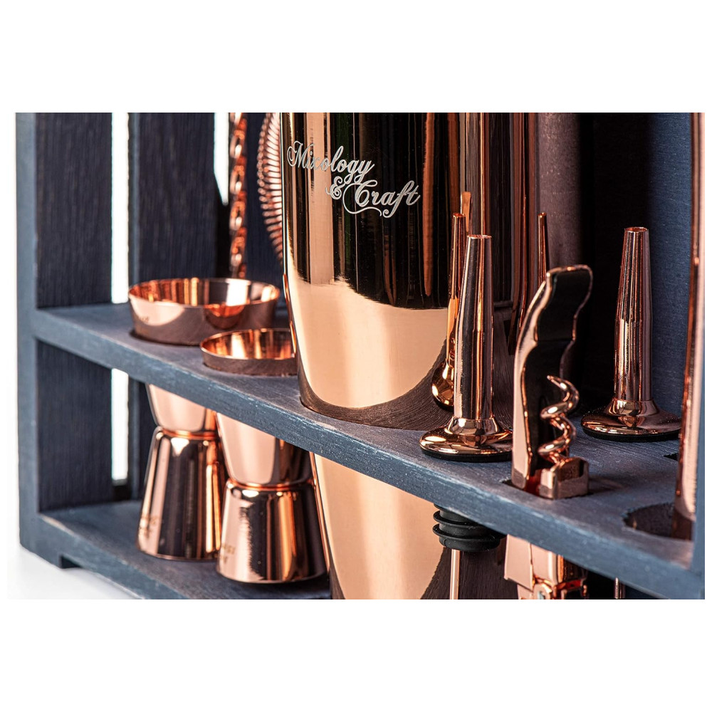 Mixology Kit Bn Profissional 24 Peças em Aço Inoxidável com Suporte Rústico Azul