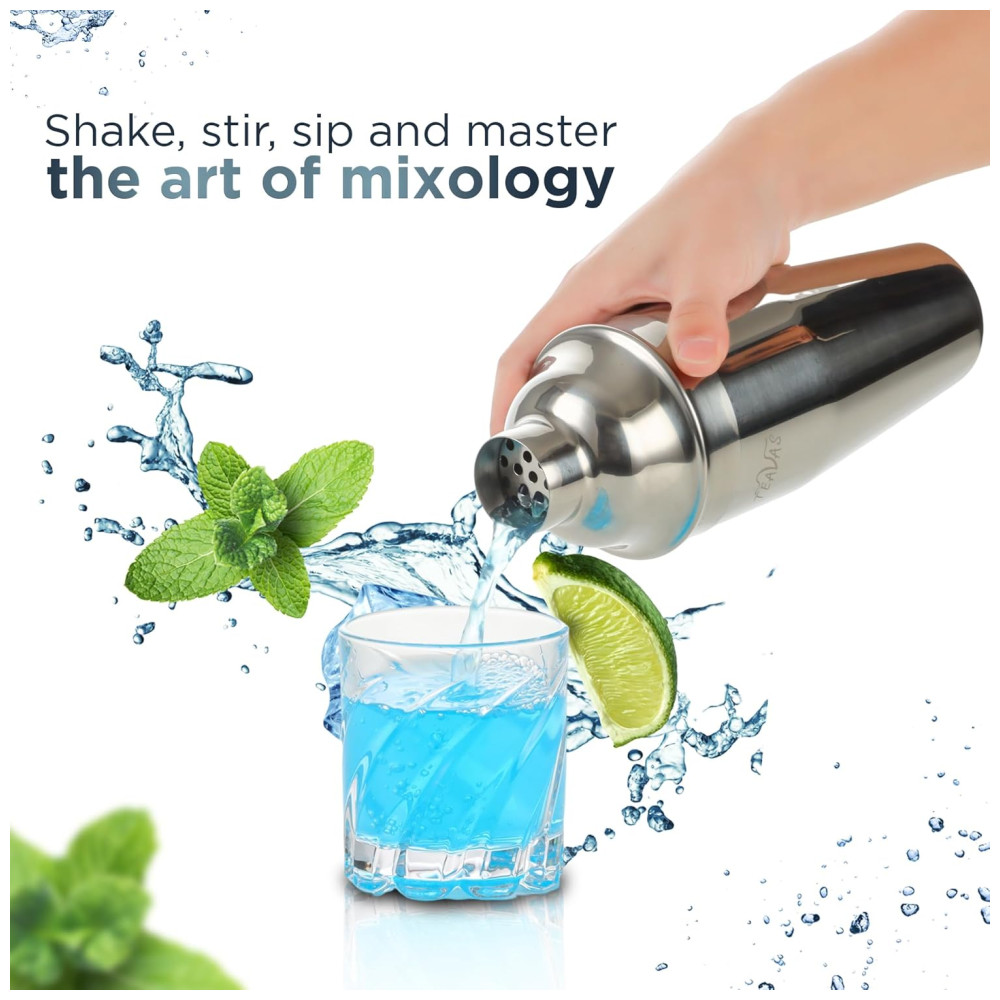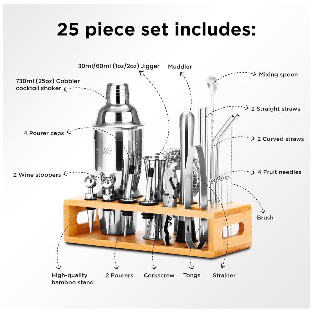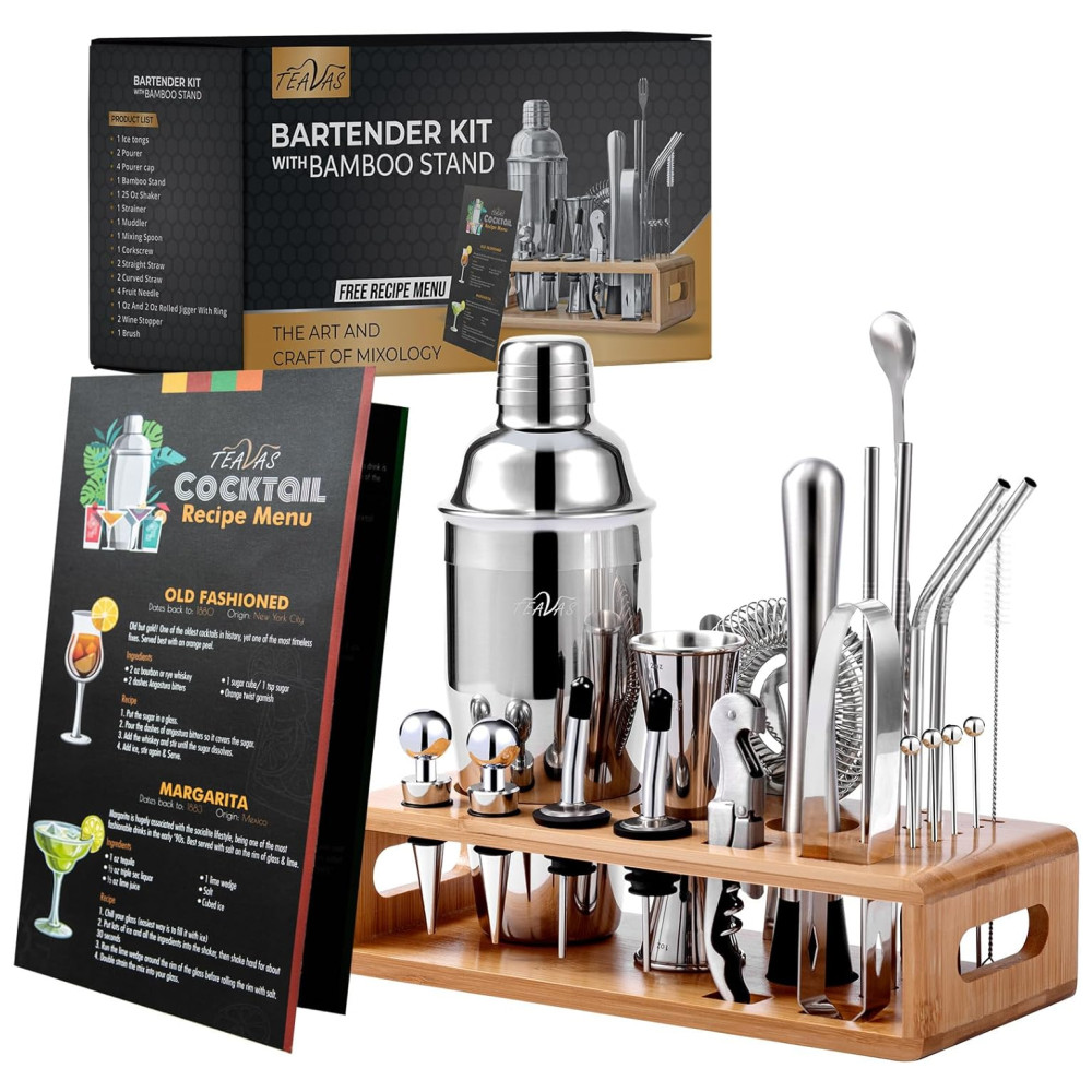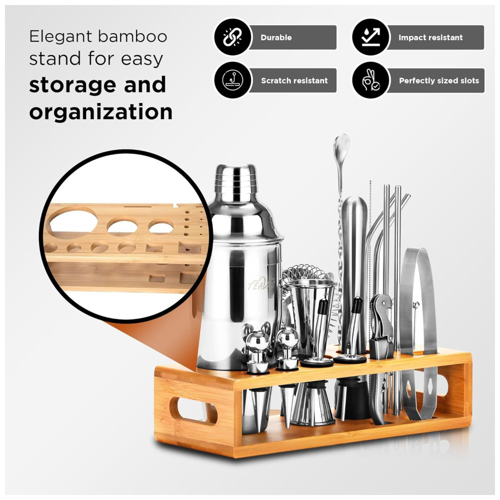 Mixology Kit Bn Profissional 25 Peças em Aço Inoxidável com Suporte e Livro de Receitas TEAVAS Prateado