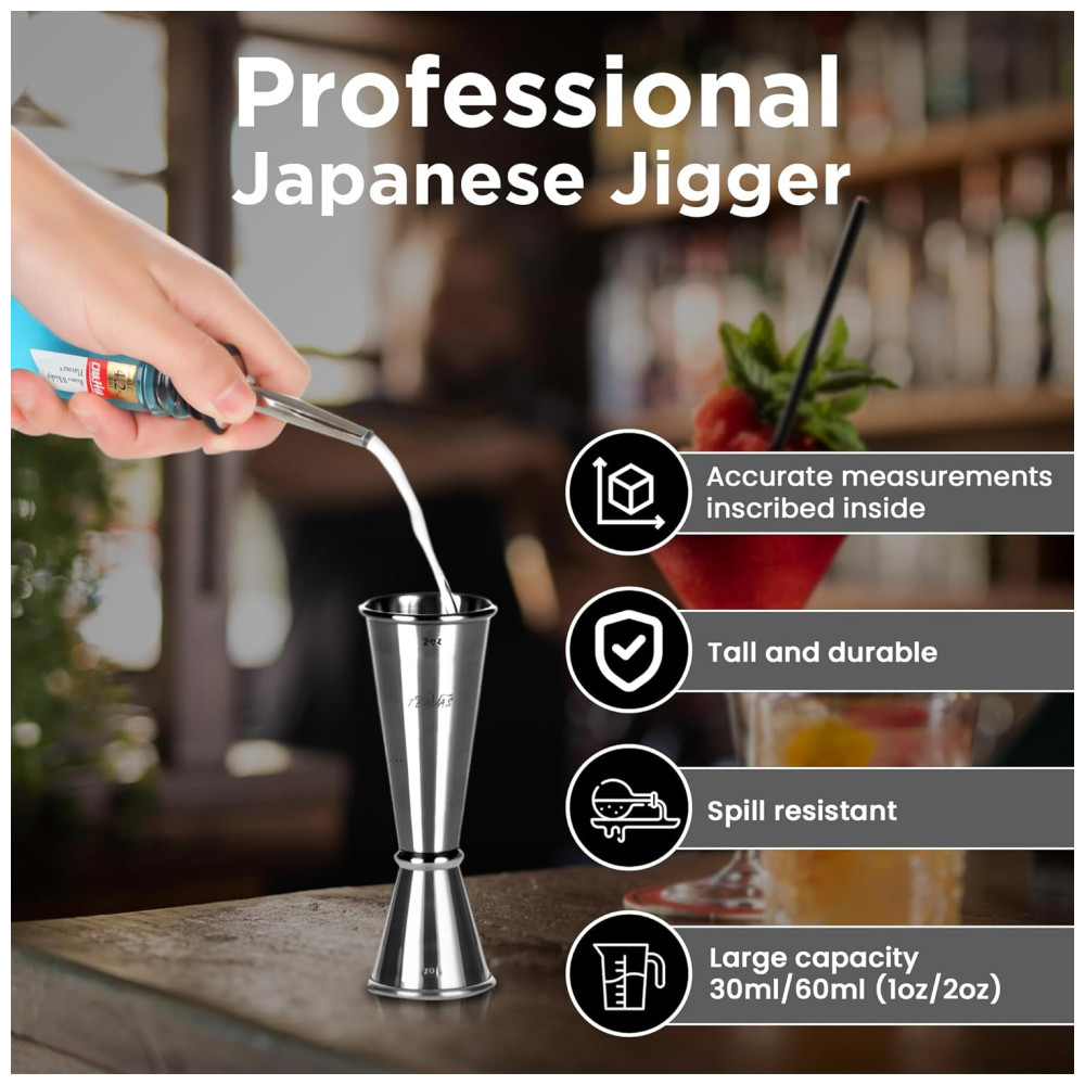 VERSÁTIL Nosso elegante conjunto de essenciais para bar é projetado para várias aplicações. Funciona perfeitamente em pequenos clubes, salões, grandes clubes e até hotéis 5 estrelas. Você também pode usar o kit de essenciais do bar para drinks em casa para festas ou até mesmo quando quiser desfrutar de coquetéis e drinks com seus amigos. Não há limite de onde e quando usar este produto elegante.