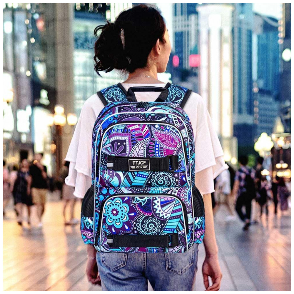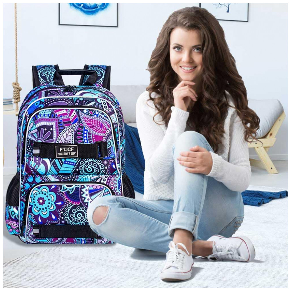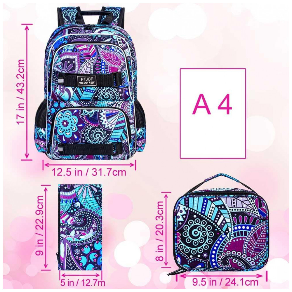 Mochila AGSDON 3 em 1 roxa escura com estampa floral para notebook 17″ com lancheira e estojo