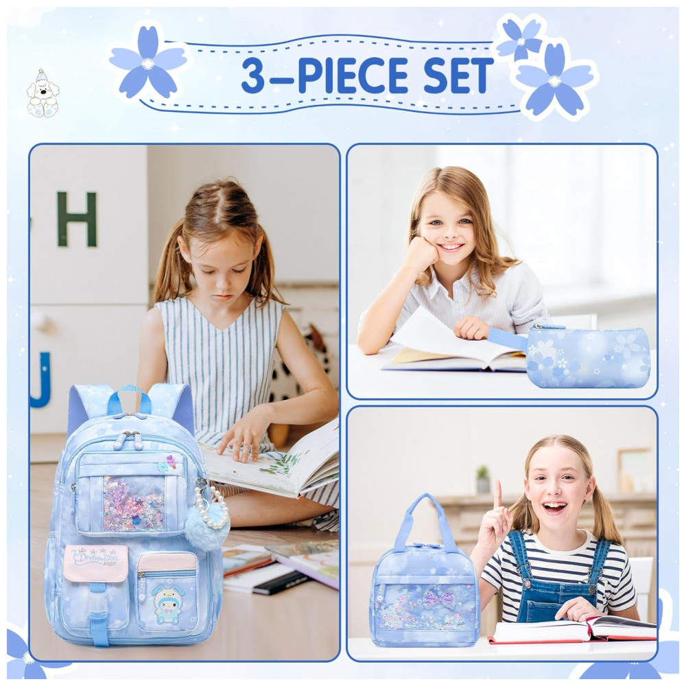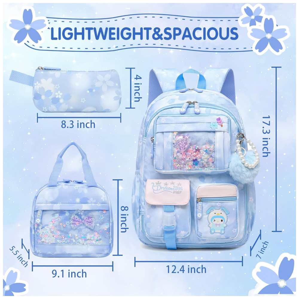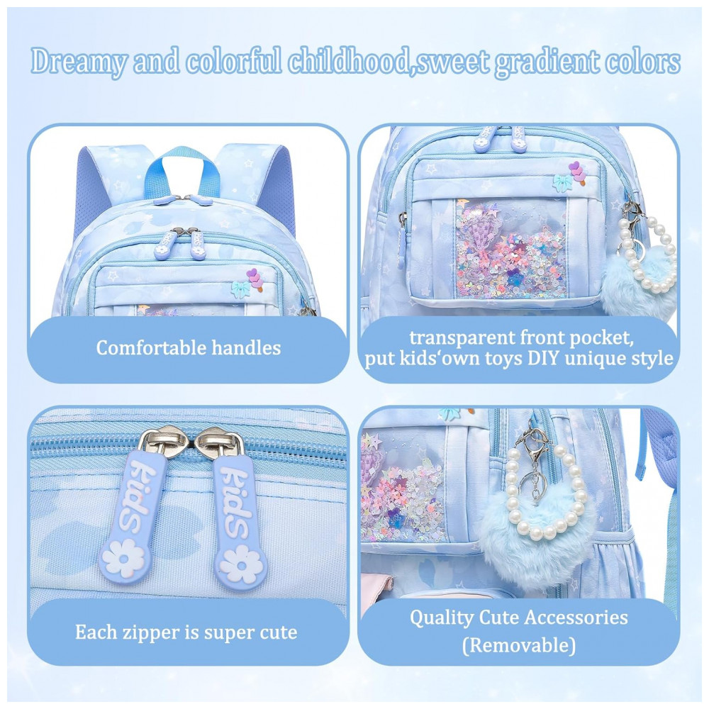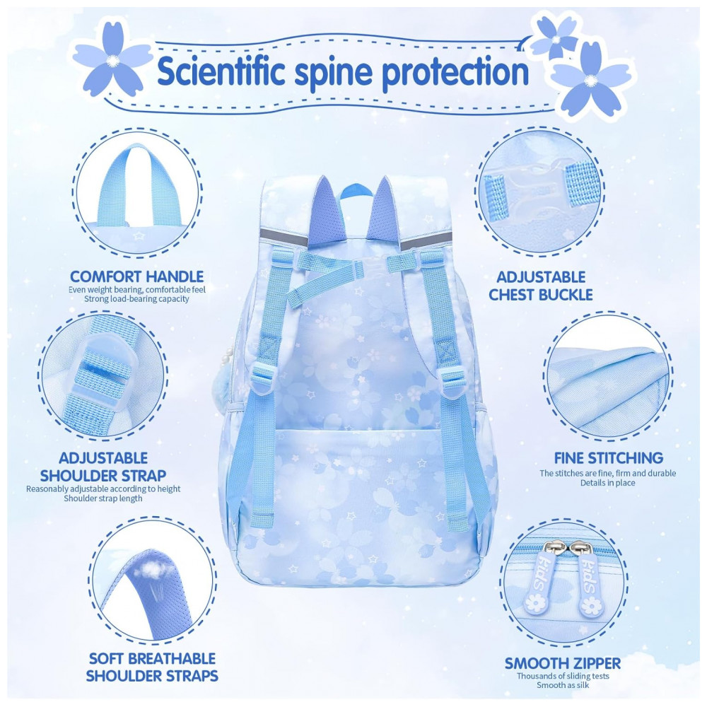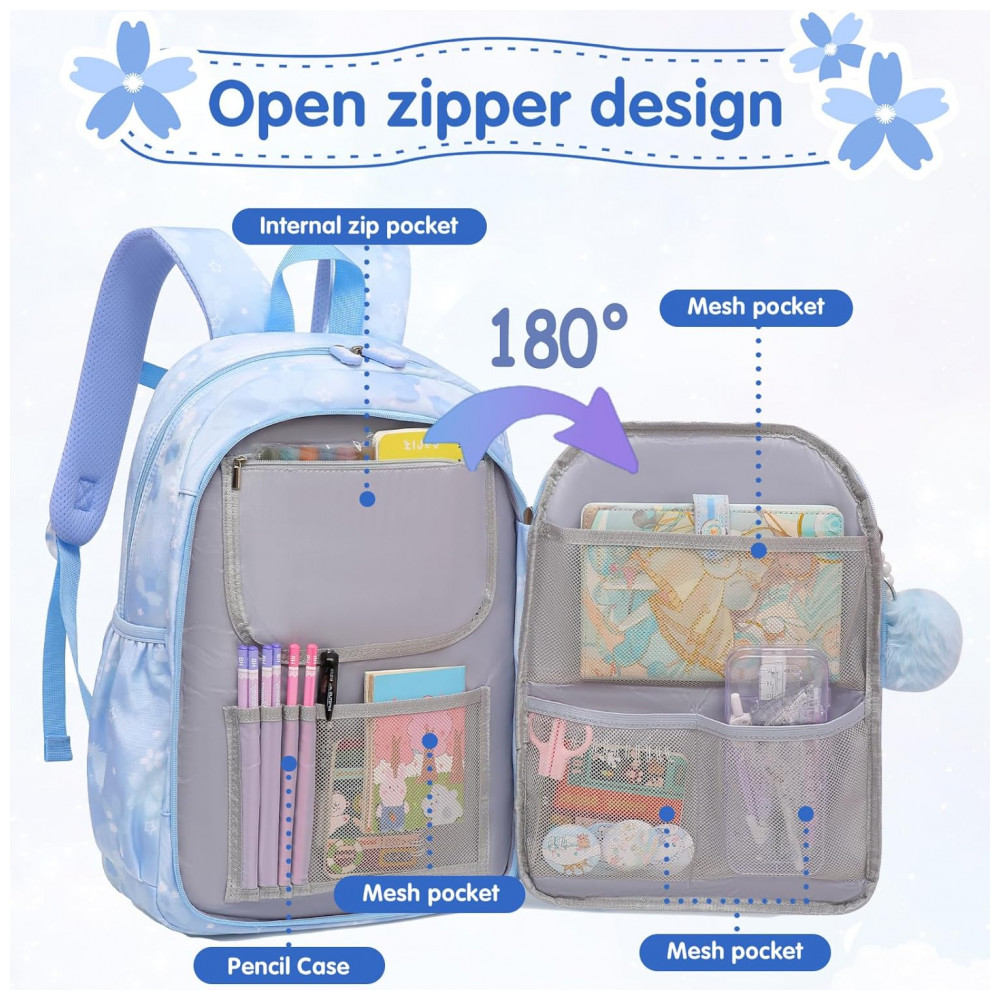 Mochila escolar juvenil com design em degradê azul, indicada para crianças e adolescentes em idade escolar, aproximadamente de 6 a 15 anos. A estrutura oferece capacidade para materiais de uso diário, com espaço para livros, cadernos, estojo, tablet ou notebook compacto, garrafa de água e itens pessoais, mantendo a organização para escola e atividades extracurriculares.