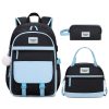 Conjunto 3 em 1 composto por mochila, lancheira e estojo, indicado para crianças e adolescentes em idade escolar que precisam transportar notebook, cadernos, livros e itens pessoais com boa organização. A mochila possui dois compartimentos principais com divisória acolchoada para notebook de até 15,6″, além de bolso interno com zíper, bolsos internos abertos e compartimento dedicado para tablet, mantendo documentos e pastas em formato A4 bem acomodados.