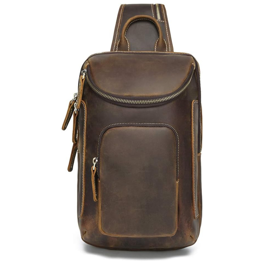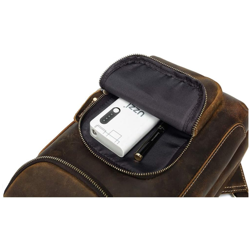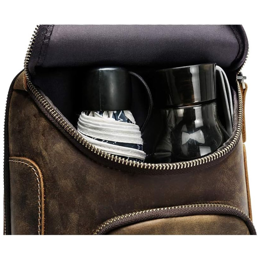 Mochila Croosbody de Couro Italiano Masculina LANNSYNE LX138 Marrom