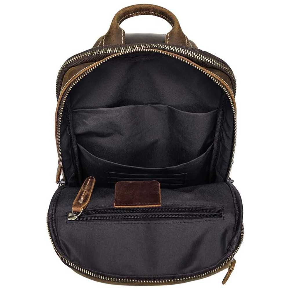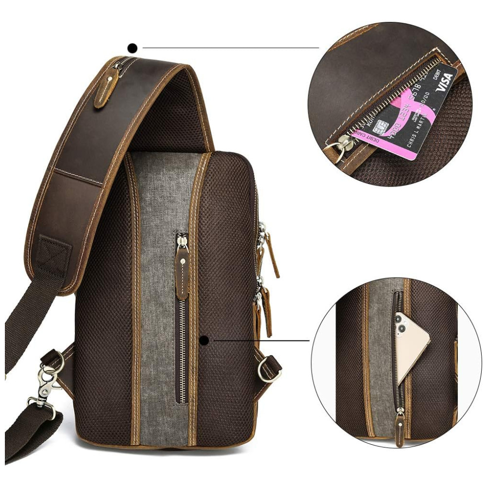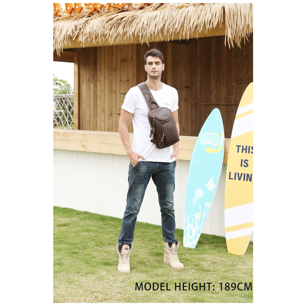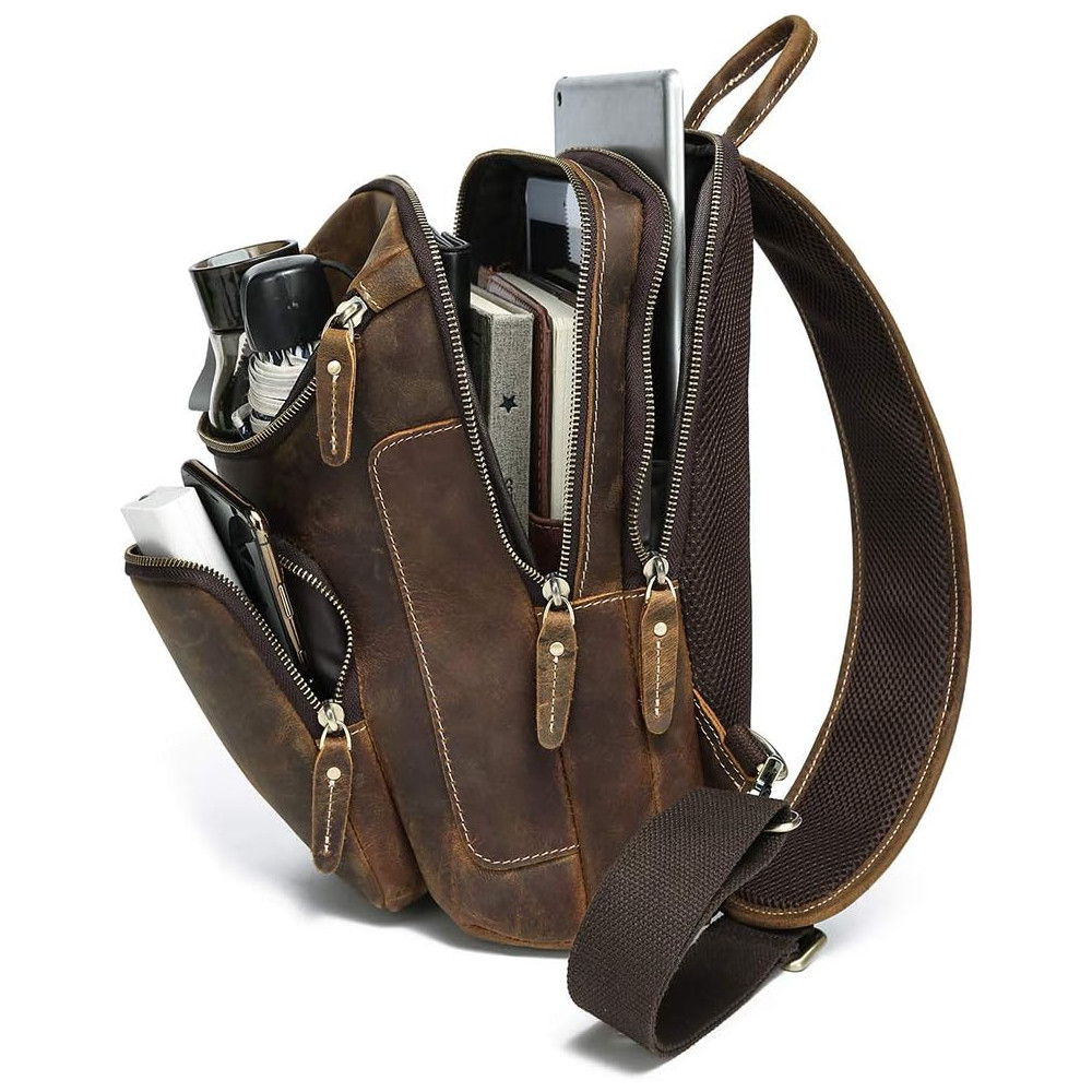 Mochila Croosbody de Couro Italiano Masculina LANNSYNE LX138 Marrom