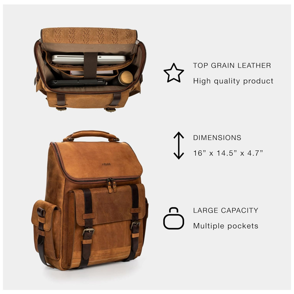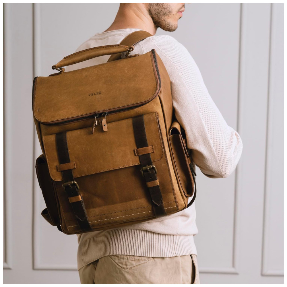 COURO DURADOURO E DE ALTA QUALIDADE Esta incrível mochila de viagem fina para homem é feita com materiais extremamente duráveis com o processo artesanal que distingue a Velez em todas as suas criações. Esta mochila de couro vintage de ombro tem a mais alta qualidade para dar um toque sofisticado às suas roupas do dia a dia.