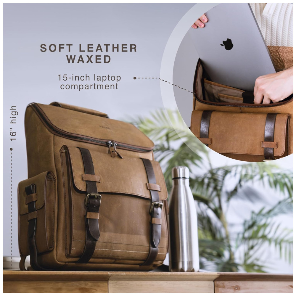 REVIVENDO O OLHAR VINTAGE Esta mochila de couro vintage para homens se encaixa perfeitamente nos seus itens essenciais do dia a dia. Um laptop de 14 , perfeitamente ajustado e um tablet são mantidos s com alças de segurança. No interior, um grande bolso com zíper é adicionado para manter seus documentos s. Os ímãs sob as fivelas resultam em um acabamento notável para uma mochila de couro levar para qualquer lugar.