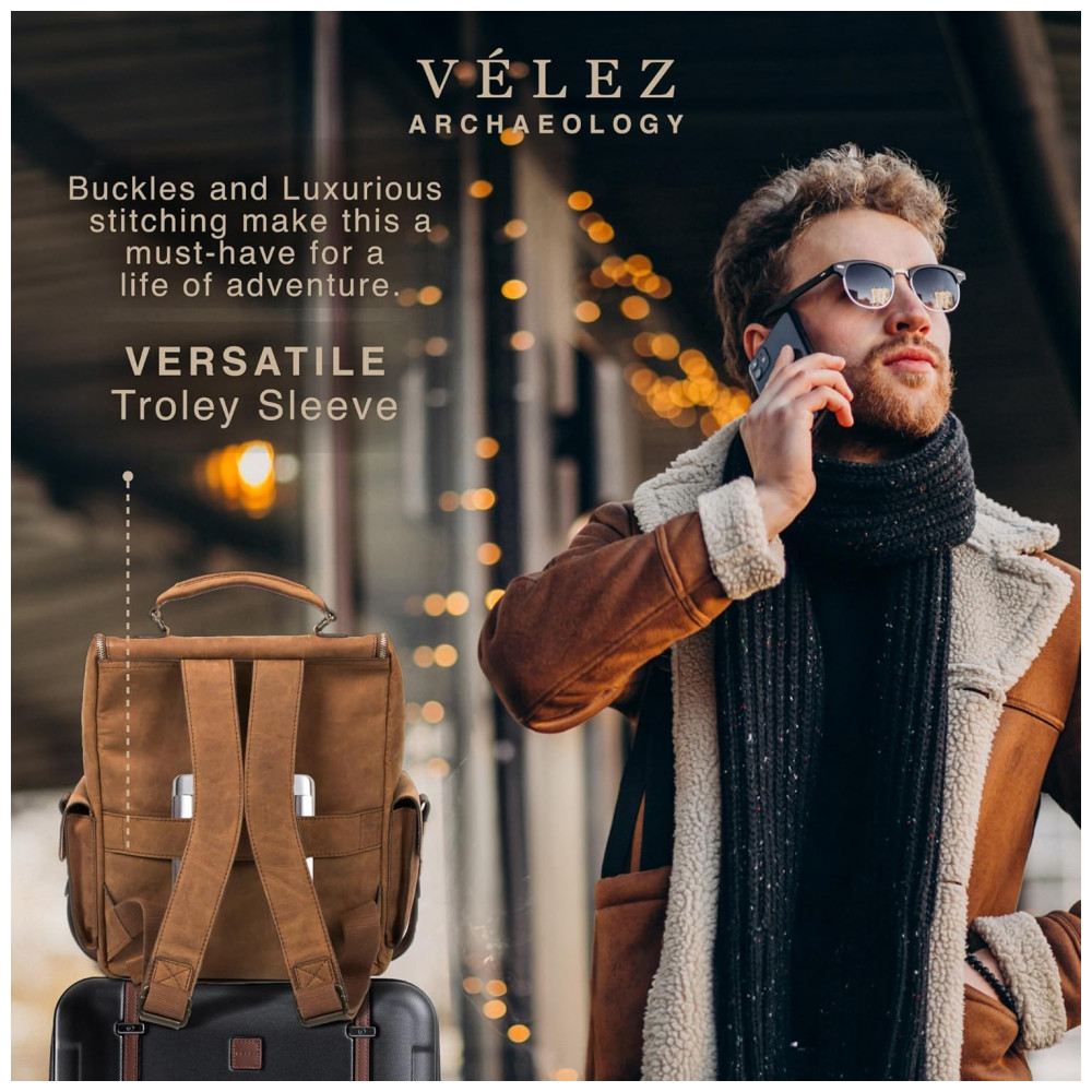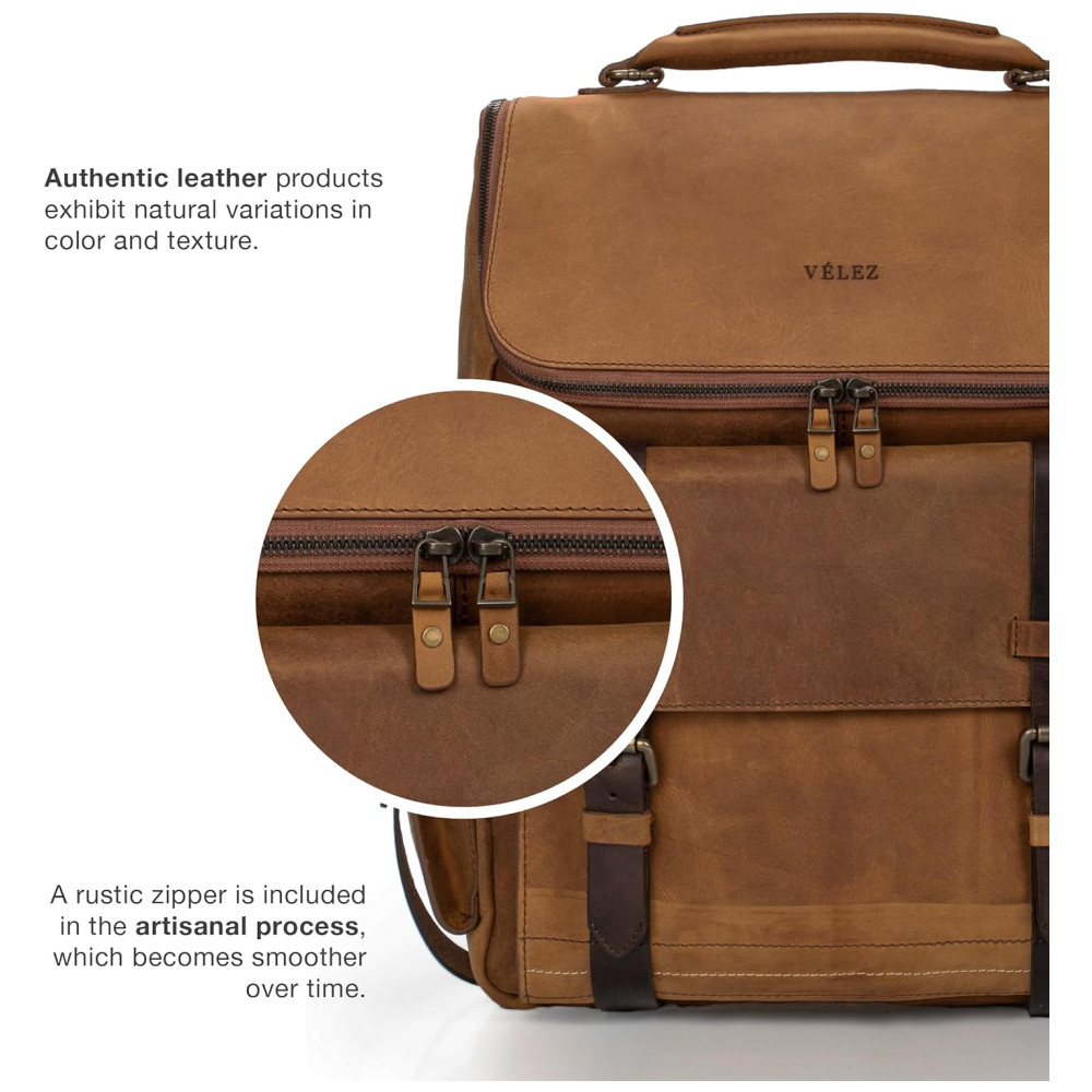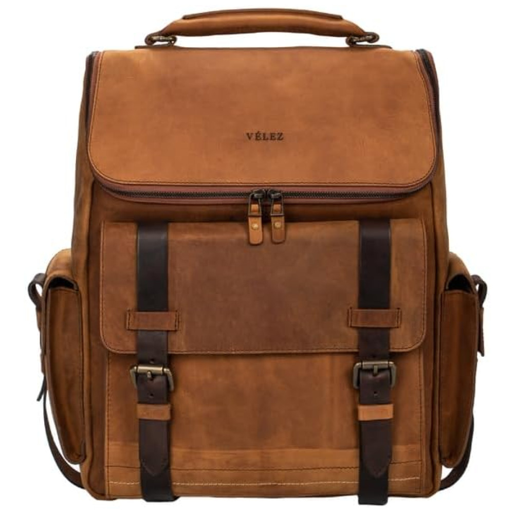 Mochila de Couro para Laptop Vintage Atemporal VELEZ Marrom