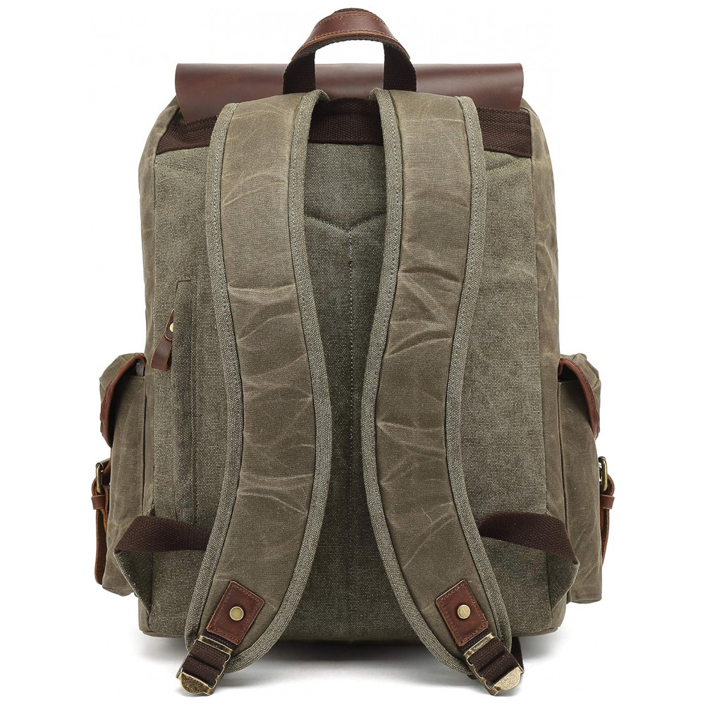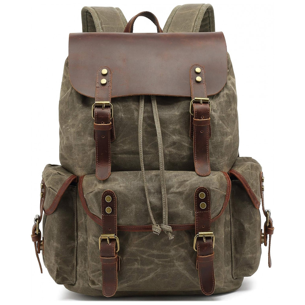 Mochila de Lona Encerada e Couro para Laptop Lmagice Verde Militar