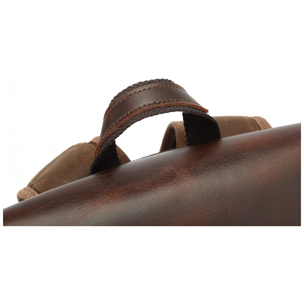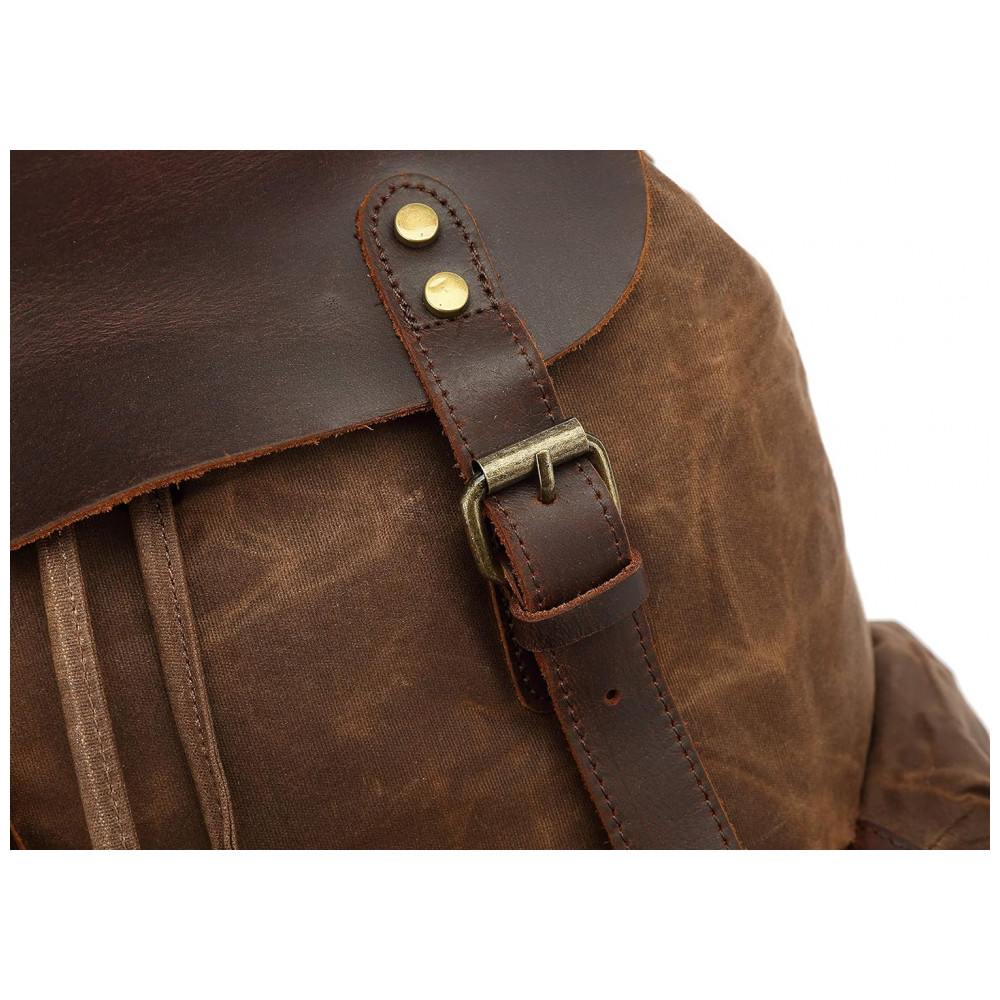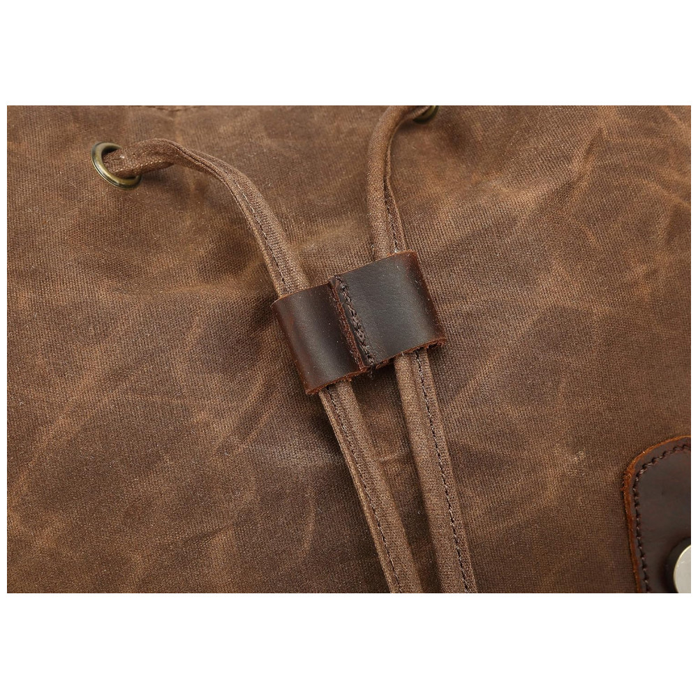 Mochila com aba de lona encerada, encerado à prova dágua, aba superior de couro Crazy Horse marrom resistente e cintos, ferragens de cobre, fechos magnéticos, cordão na parte superior, bolsos funcionais, design clássico que nunca fica atrás da tendência.