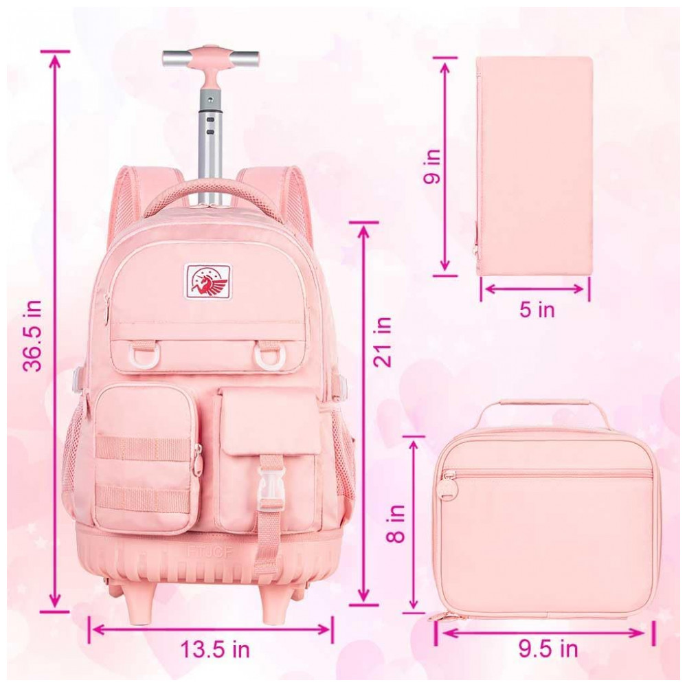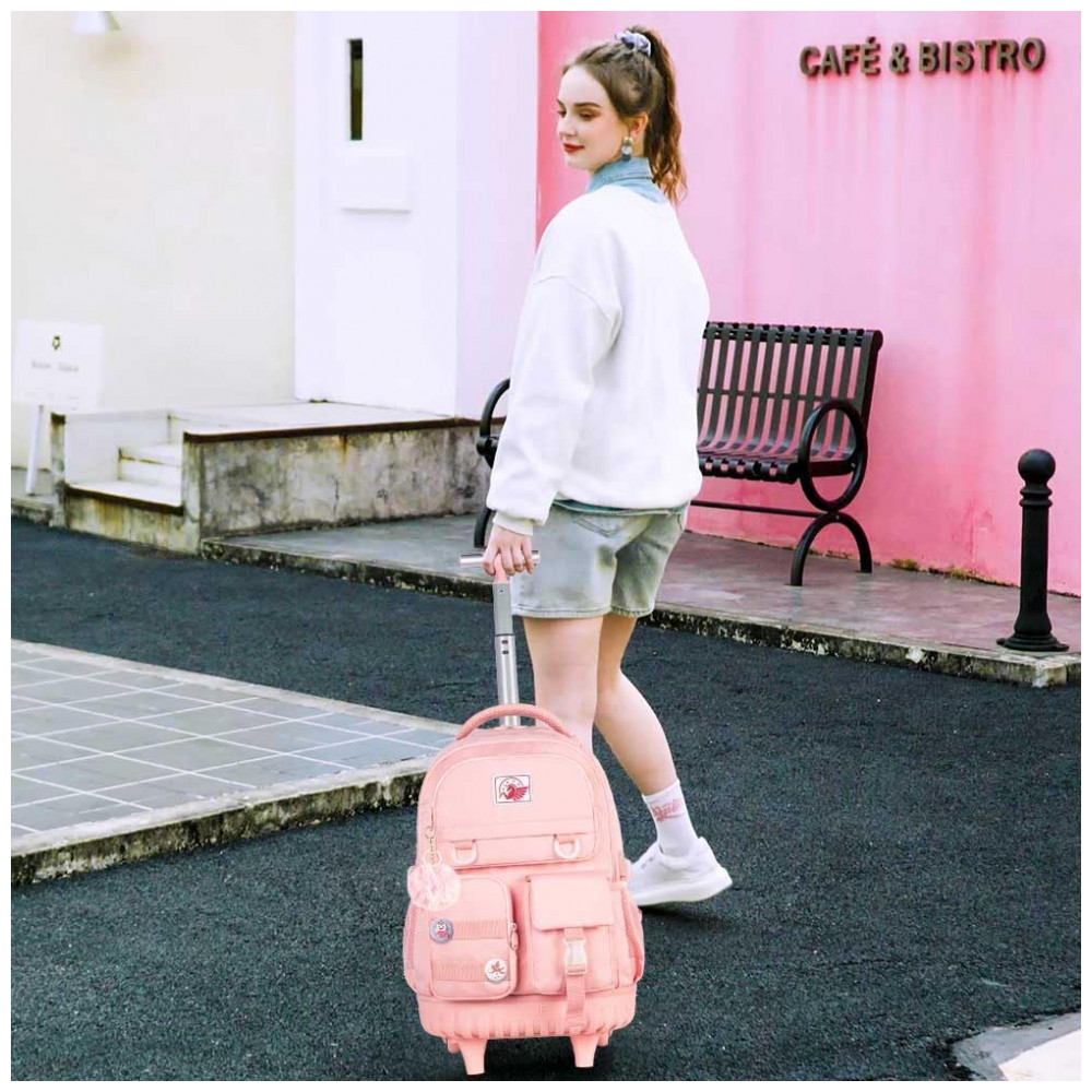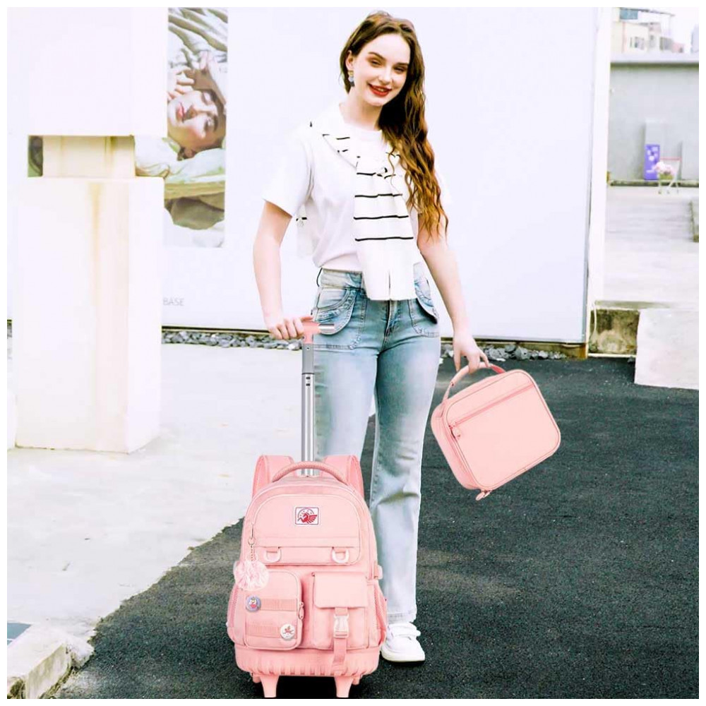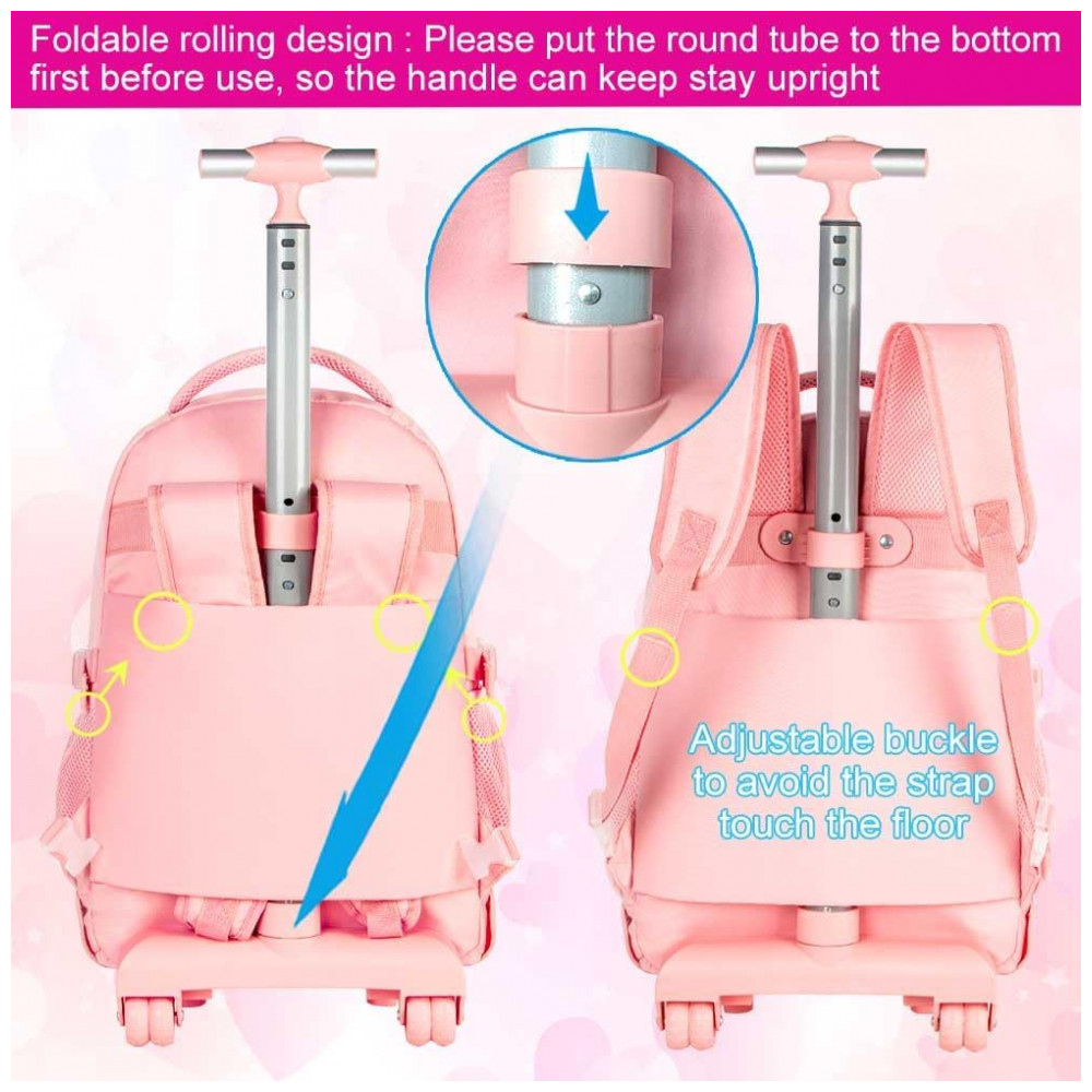 Mochila de rodinhas CCJPX 3 em 1 rosa para notebook com lancheira e estojo