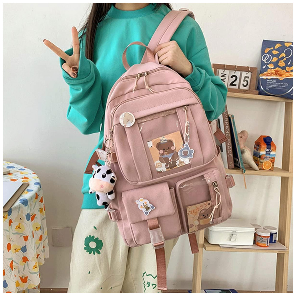 Conteúdo da embalagem: 1 mochila Eagerrich rosa com acessórios decorativos