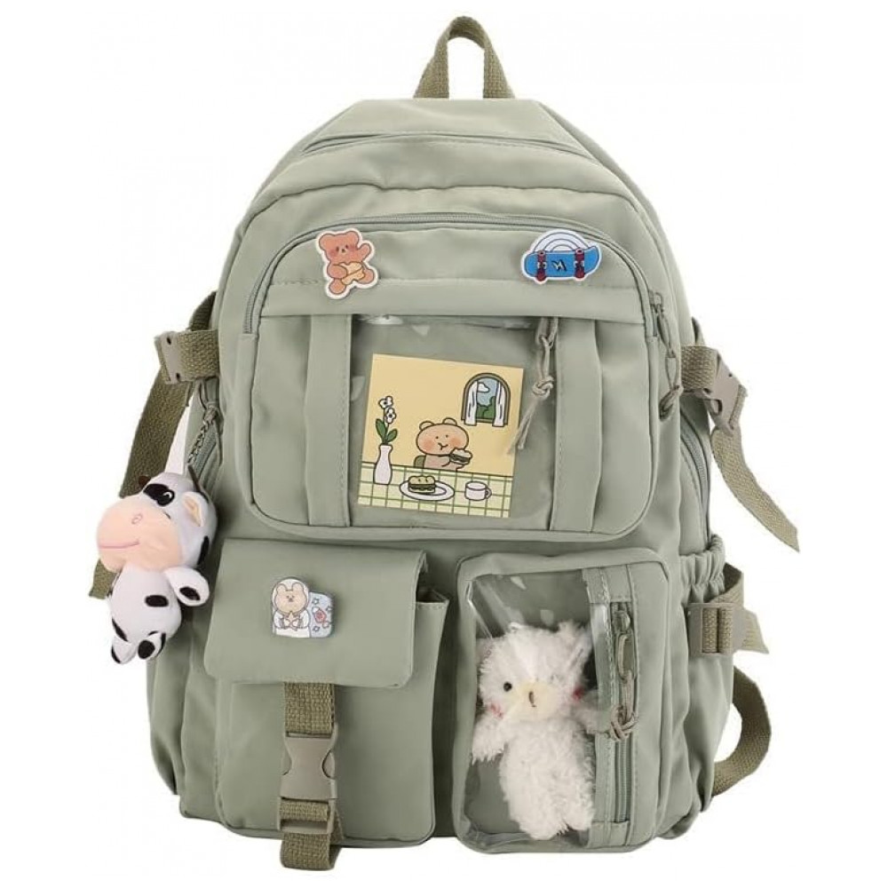 Conteúdo da embalagem: 1 mochila Eagerrich verde com acessórios decorativos