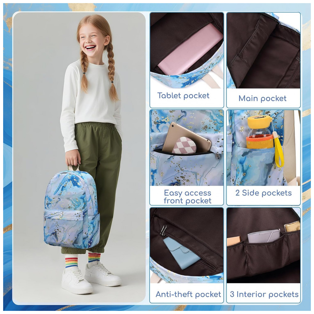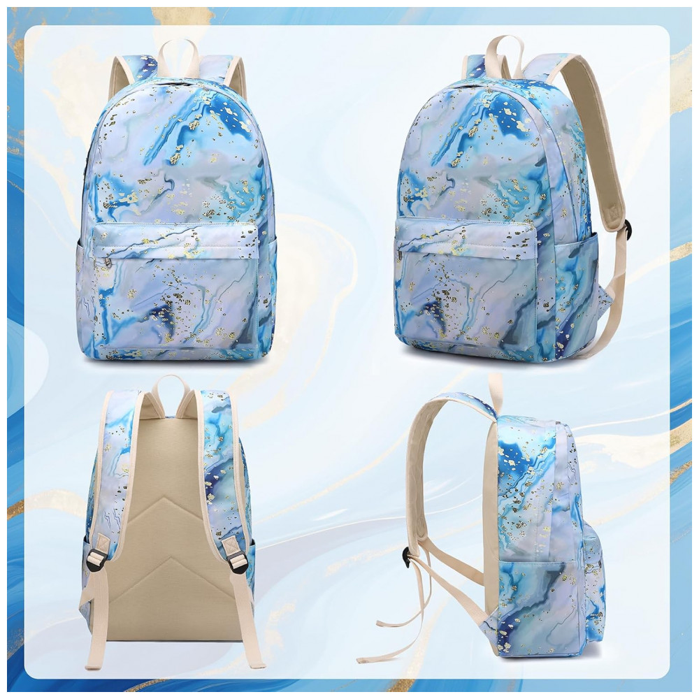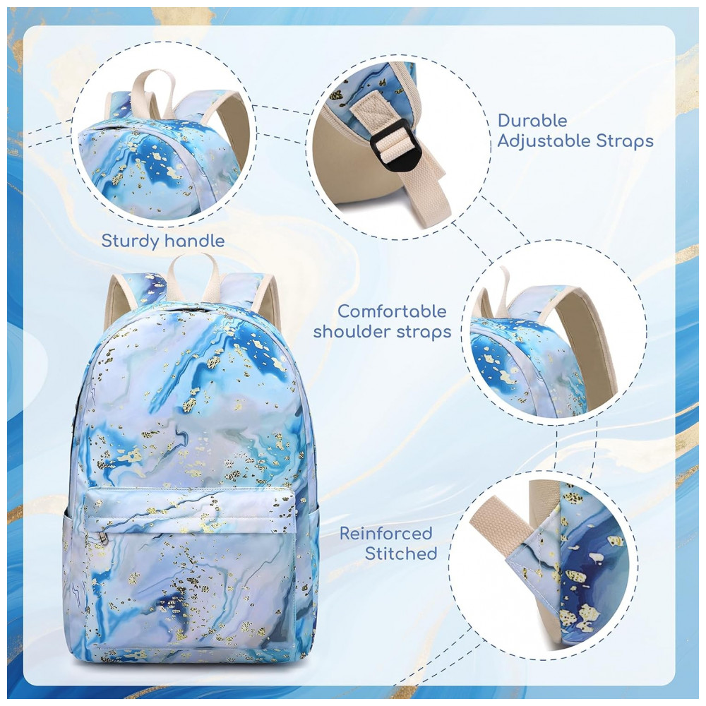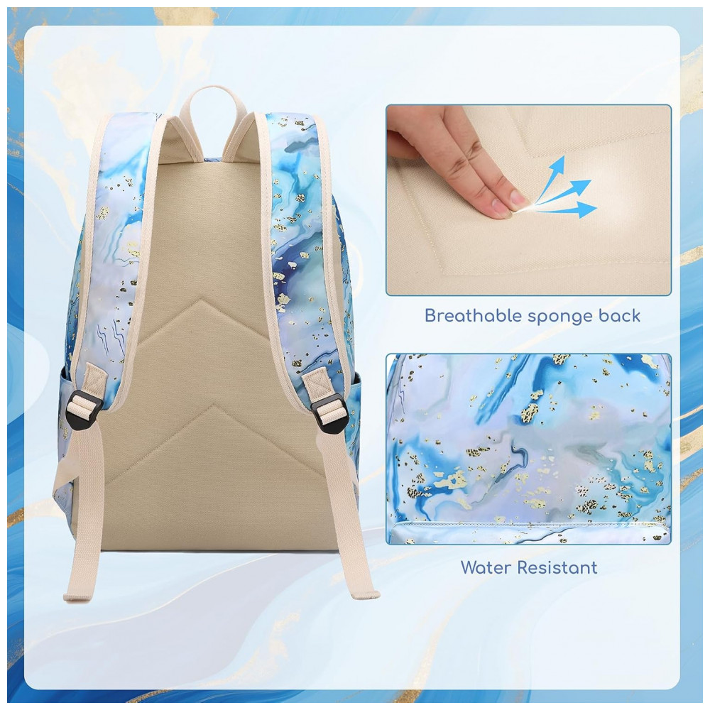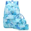 Mochila escolar Bluboon juvenil feminina azul e branca conjunto 3 peças com lancheira térmica e estojo para notebook 355 cm