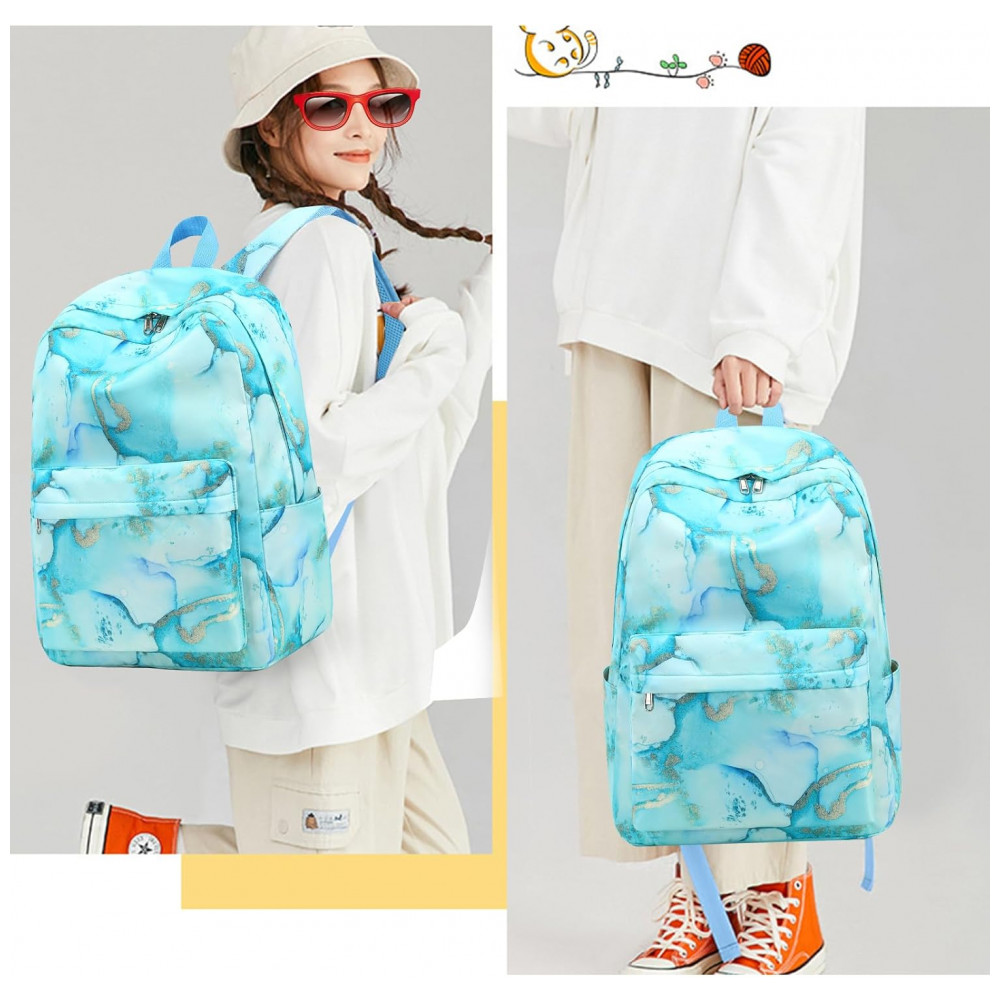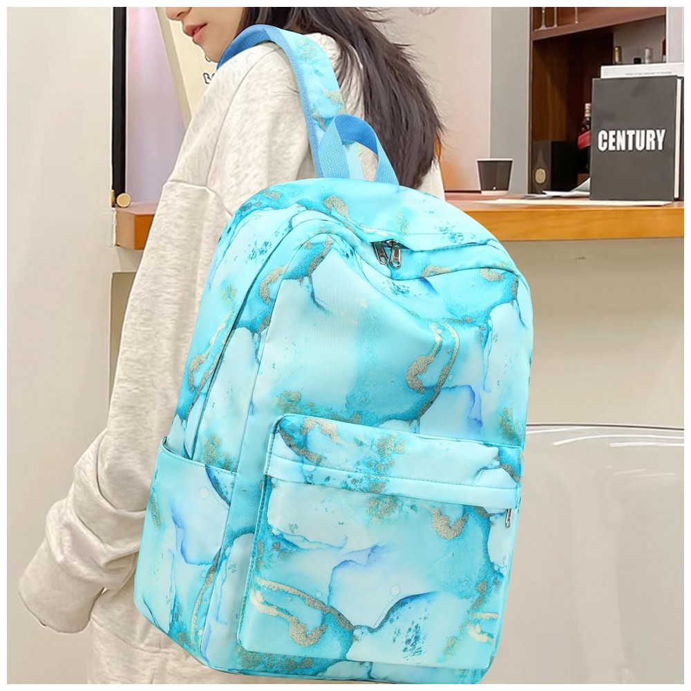 Modelo: Mochila escolar juvenil 3 peças mármore azul com dourado