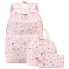Conjunto escolar Bluboon 3 em 1 composto por mochila, lancheira térmica e estojo, indicado para meninas e adolescentes em rotina escolar, viagens e uso diário. A mochila oferece compartimento interno acolchoado compatível com notebook de até 35,5 cm, além de espaço para fichários, cadernos, livros e demais materiais escolares, com bolso frontal com zíper e bolsos laterais para garrafas ou pequenos objetos.