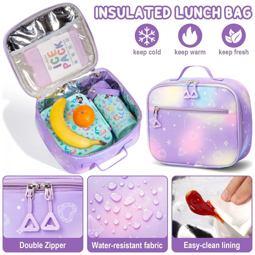 O conjunto é produzido em poliéster leve, resistente e repelente à água, com costuras reforçadas e zíperes de abertura suave, adequado ao uso diário em ambiente escolar e em atividades ao ar livre. As alças de ombro da mochila são acolchoadas com espuma espessa, possuem desenho ergonômico e fivela peitoral que auxilia na distribuição de peso e redução de deslizamentos, enquanto o painel traseiro acolchoado com material respirável aumenta o conforto. A lancheira possui isolamento térmico de parede dupla para manter alimentos e bebidas em temperatura adequada, e o estojo com bom volume interno ajuda a organizar lápis, canetas e outros acessórios escolares.