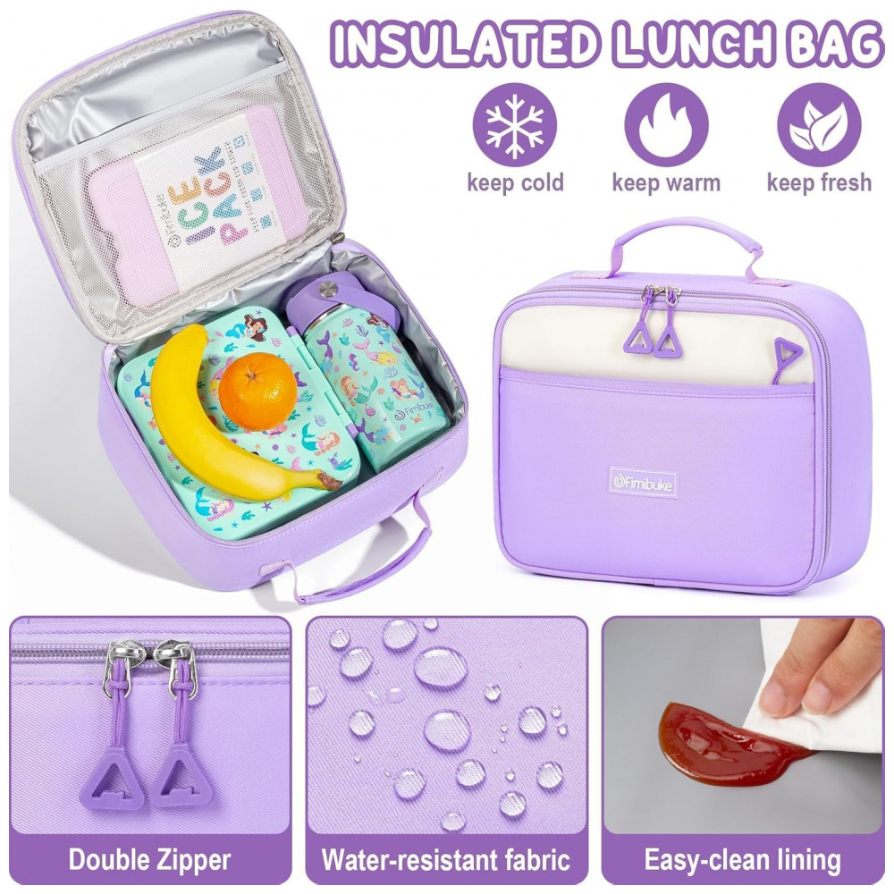 Mochila escolar Fimibuke infantil juvenil roxa conjunto 3 peças com lancheira térmica e estojo impermeável