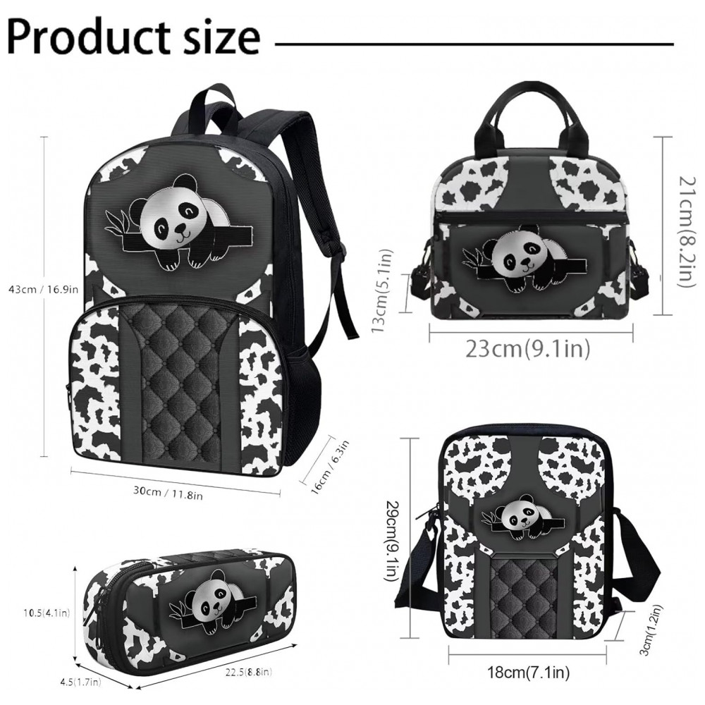 Mochila escolar gearider prata com estampa de pandas 4 em 1 com lancheira bolsa tiracolo e estojo