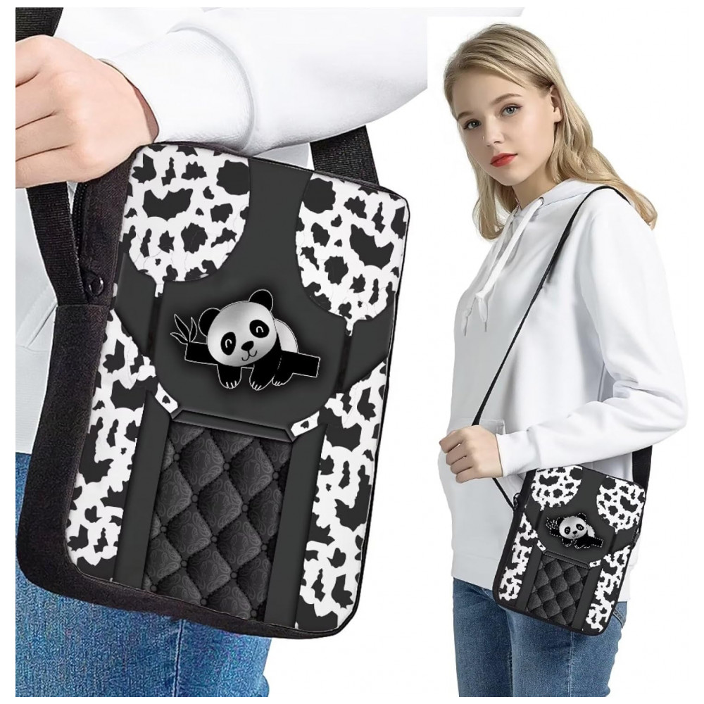 Modelo: Conjunto mochila escolar 4 peças prata com estampa de pandas
