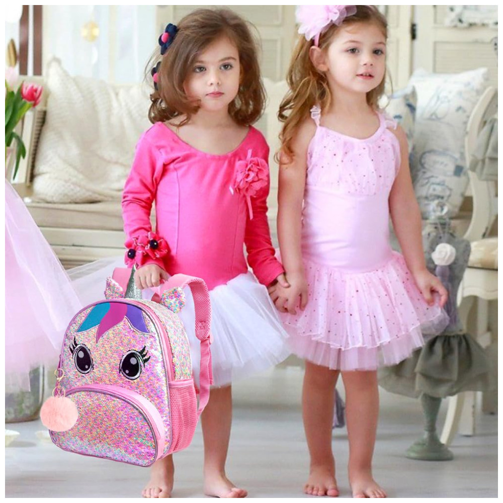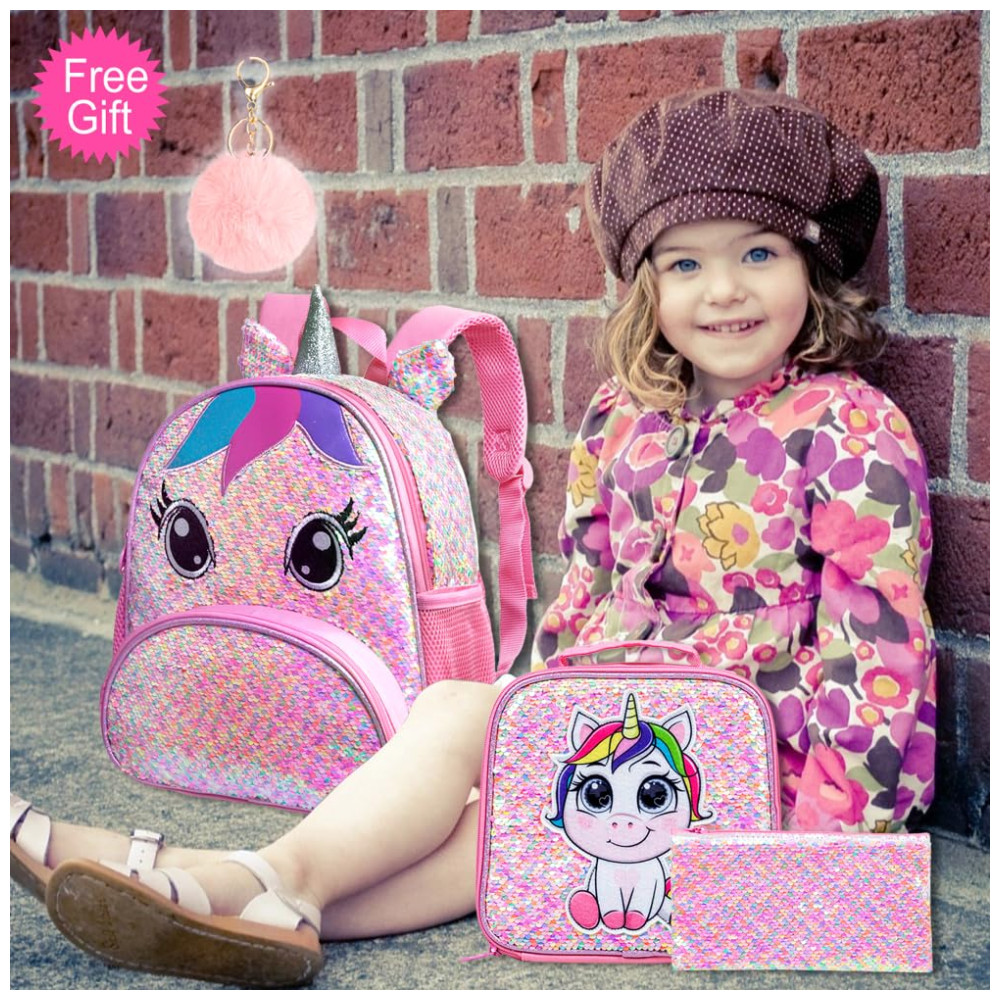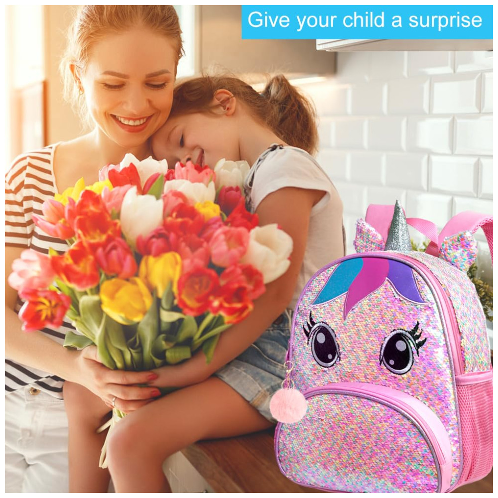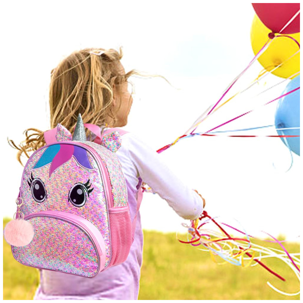 PERSPECTIVA DA MODA A mochila infantil com conjunto de lancheira é construída com material de lantejoulas reversível com efeitos brilhantes, que atrairá seu bebê para brincar sozinho