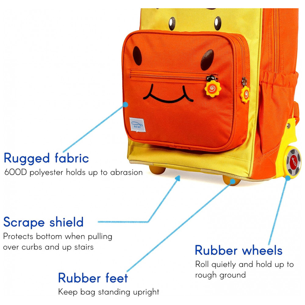 Tamanho perfeito para escola e viagens Pequeno o suficiente para crianças do pré escolar ao 3 ano puxarem.