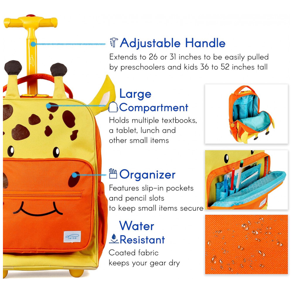 Mochila Escolar Infantil com Rodinhas 32cm TWISE Girafa para Crianças Amarela