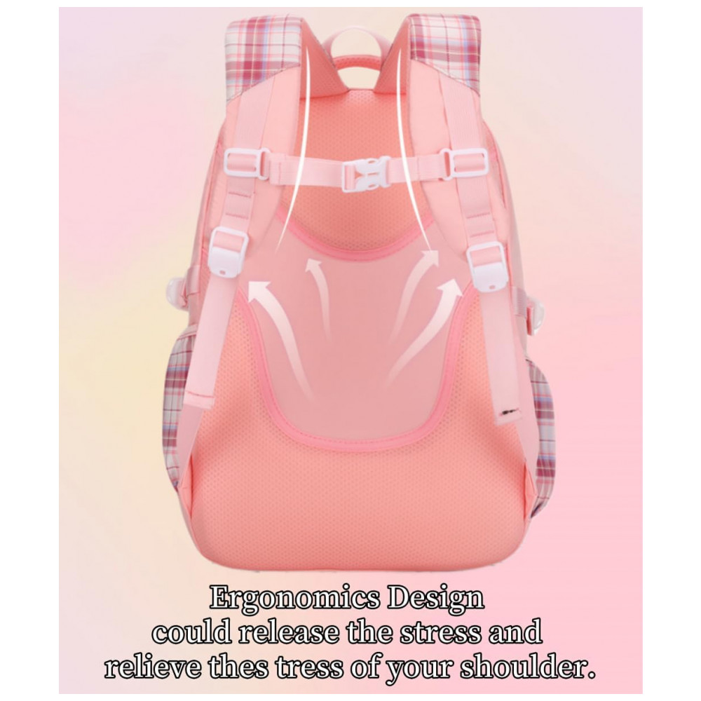 Mochila escolar infantil kistou quadriculada com laço oxford impermeável grande capacidade rosa e branca