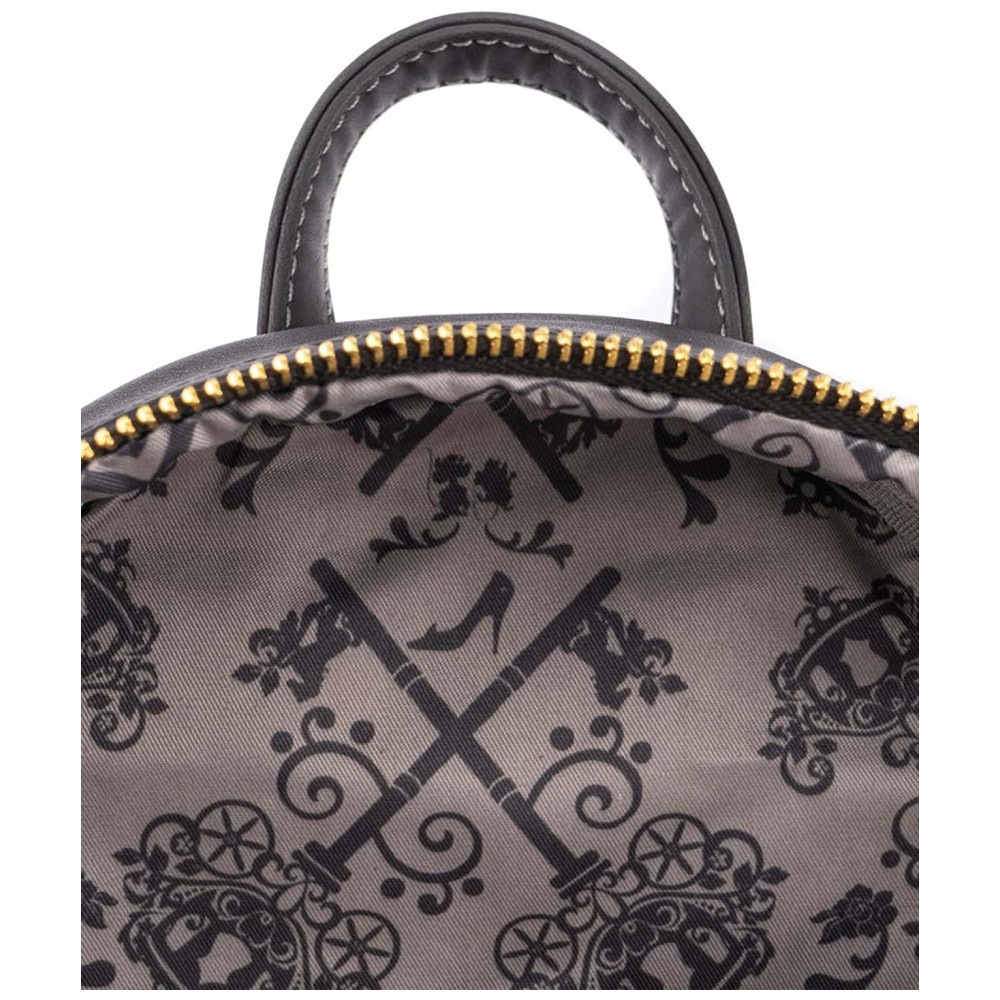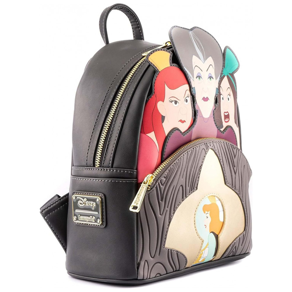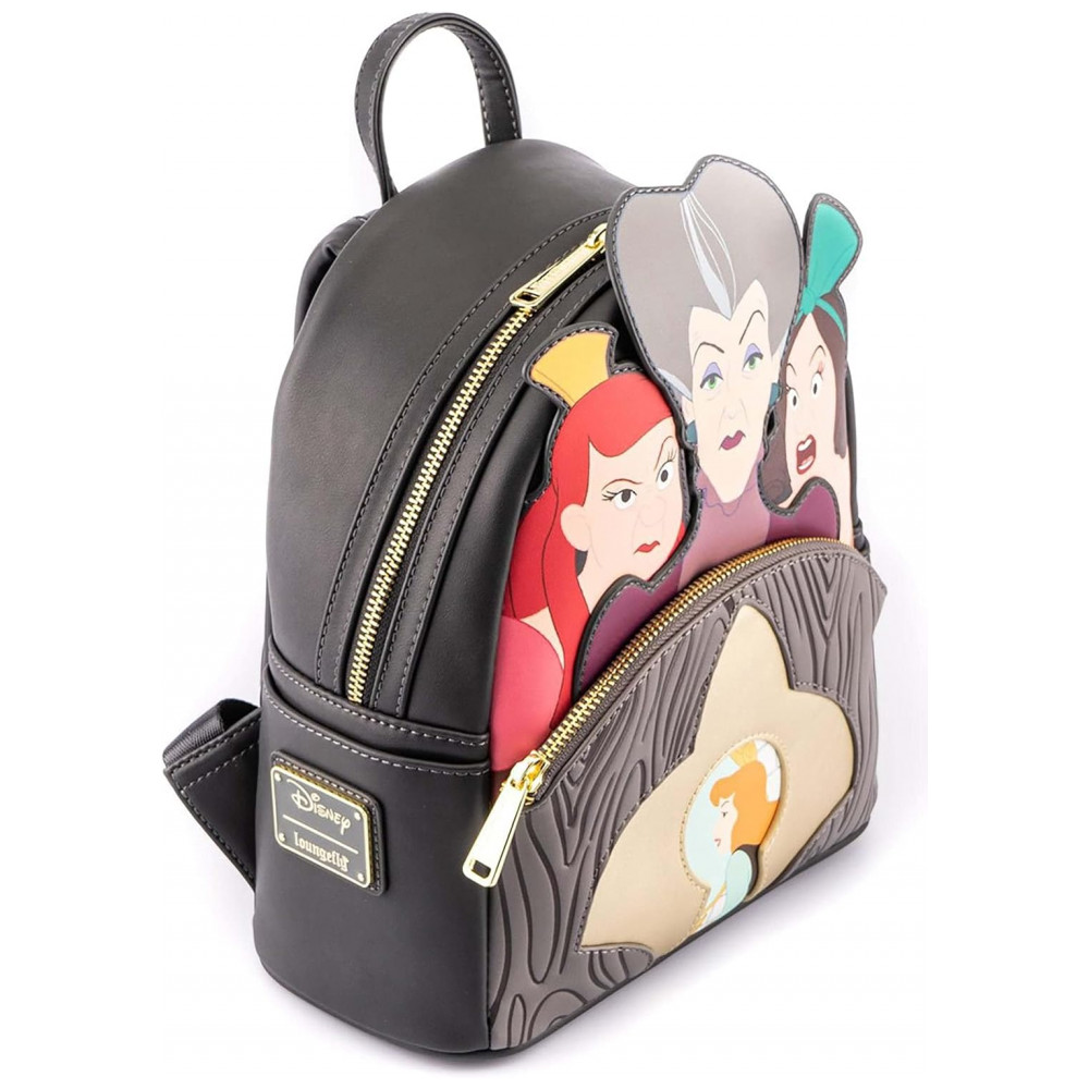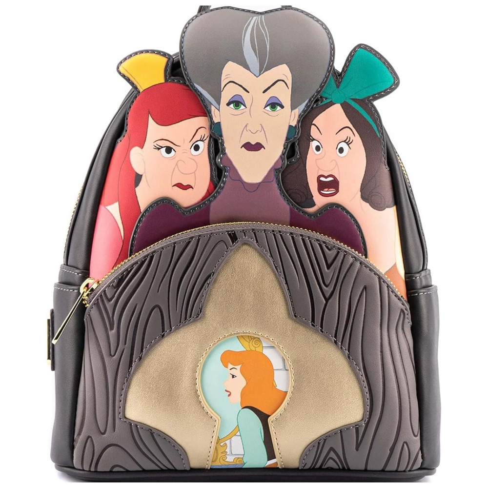 A chave para uma roupa de vilão são os acessórios. A Mini Mochila Loungefly Cinderela Evil Stepmother e Stepsisters Villains Scene está aqui para governar o poleiro. Através de um buraco de fechadura de ouro você encontrará Cinderela, enquanto sua madrasta e suas meias irmãs pairam sobre a vista com olhares desaprovadores. Na parte de trás, você encontrará Jaq e Gus carregando a chave que pode libertar Cinderela.