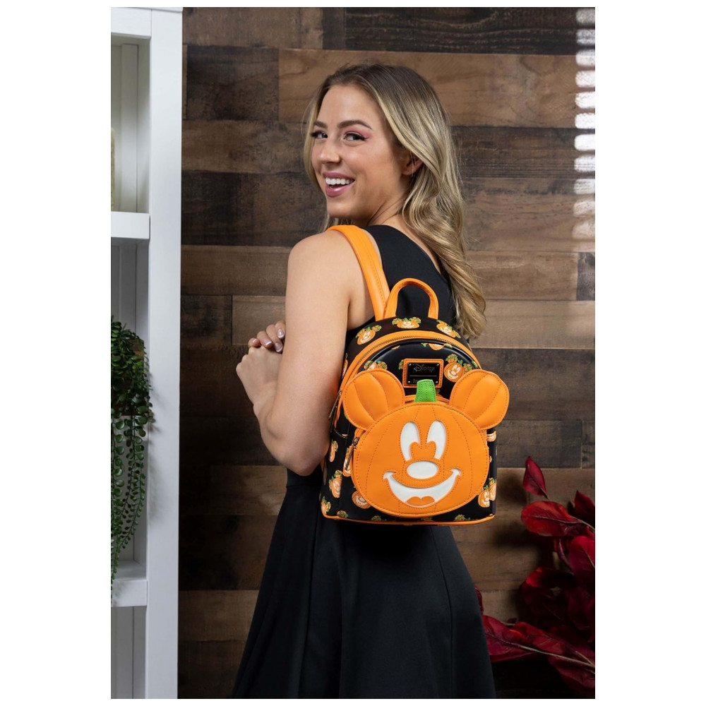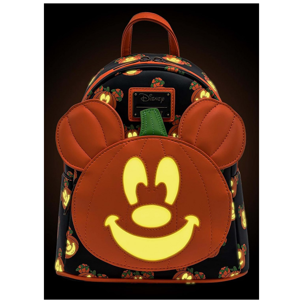 Mochila Escolar Infantil Loungefly Disney Mickey Mouse Abóbora Lanterna para Crianças a Partir de 5 Anos Preta