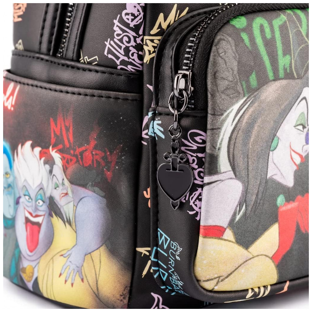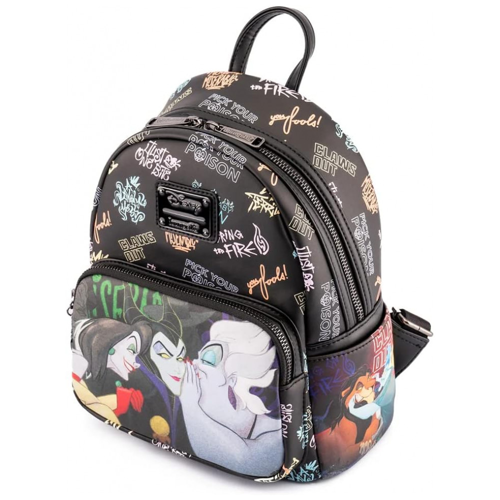 Mochila Escolar Infantil Loungefly Disney Vilãs para Crianças a Partir de 6 Anos Preta