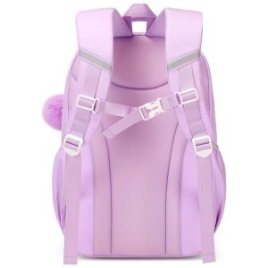 Mochila escolar infantil SPORTBANG desenvolvida em conjunto com estojo transparente e chaveiro de pompom, indicada para meninas em idade escolar que necessitam de alta capacidade de armazenamento para livros, cadernos e materiais de uso diário. Com cerca de 31 cm de largura, 16 cm de profundidade e 44 cm de altura, a mochila oferece volume aproximado de 22 litros, distribuídos em múltiplos compartimentos internos e externos.