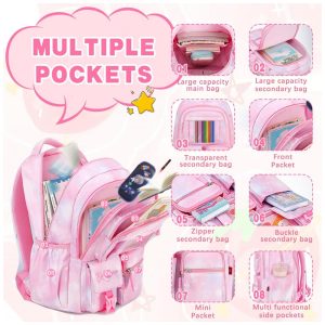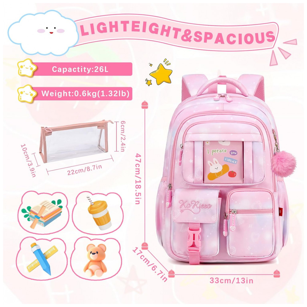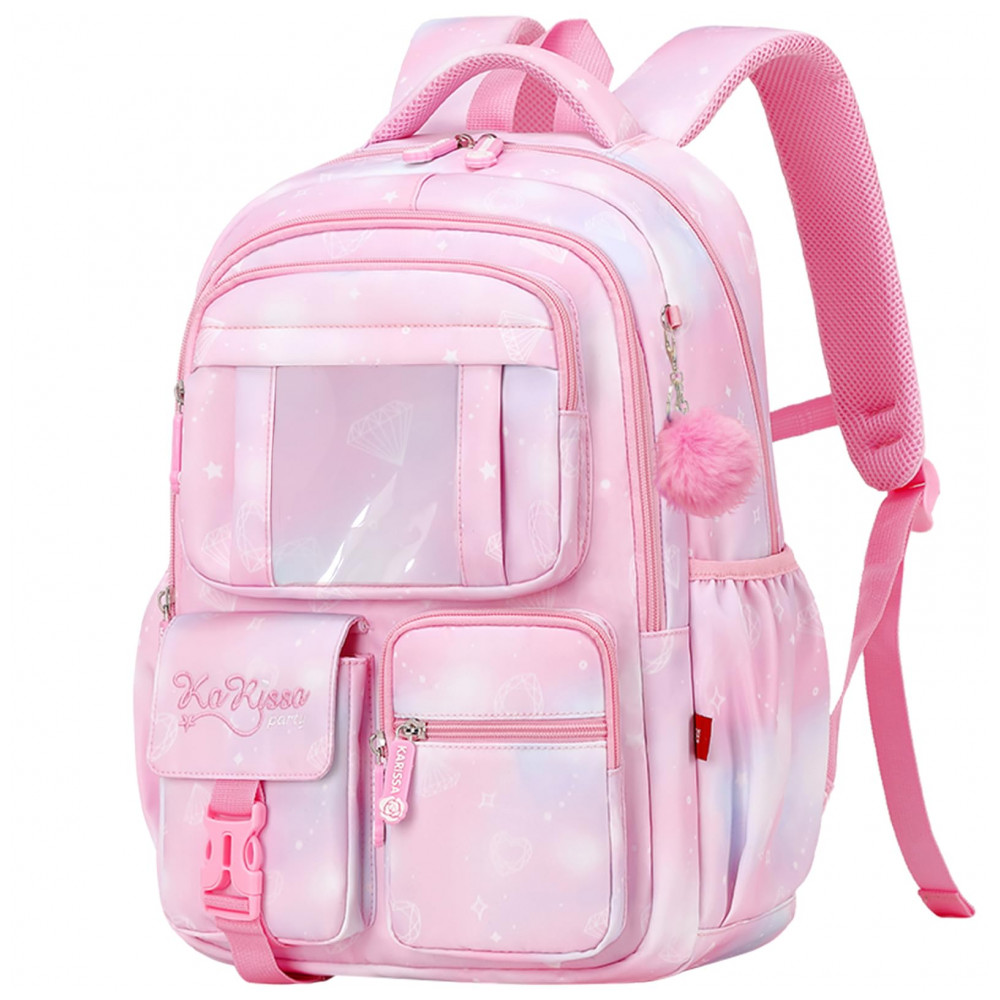 Mochila escolar infantil SPORTBANG kawaii 3 peças grande capacidade com estojo transparente e chaveiro de pompom rosa