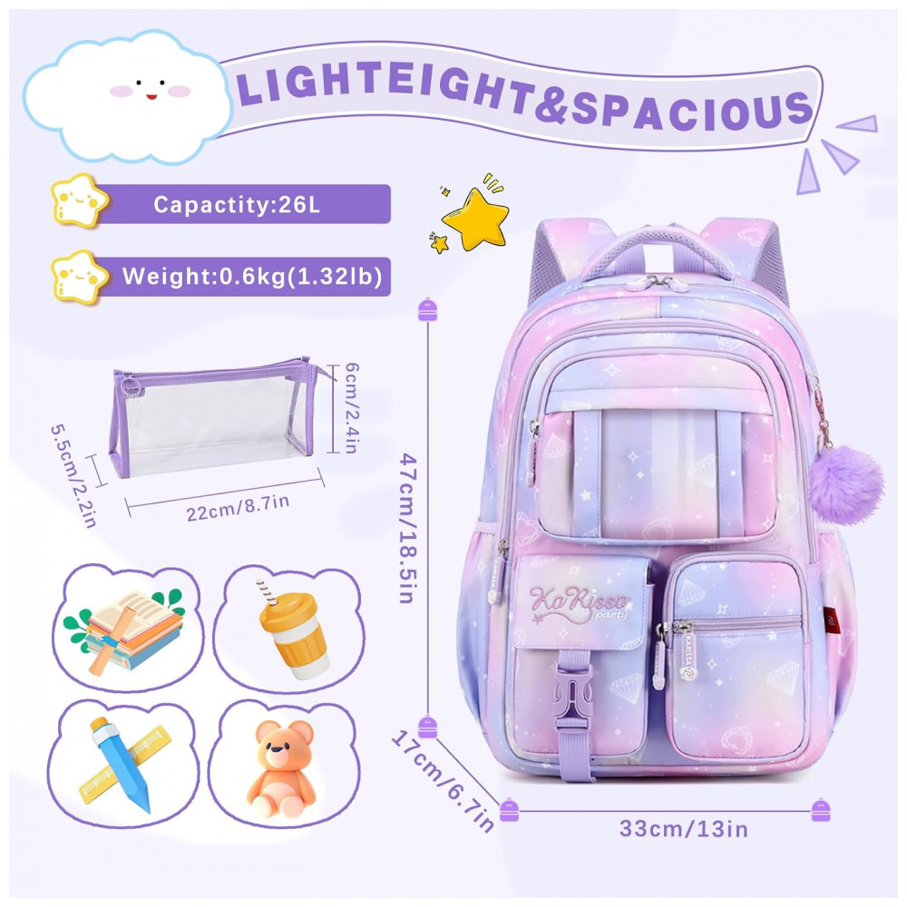 Mochila escolar infantil SPORTBANG kawaii 3 peças grande capacidade com estojo transparente e chaveiro de pompom roxa