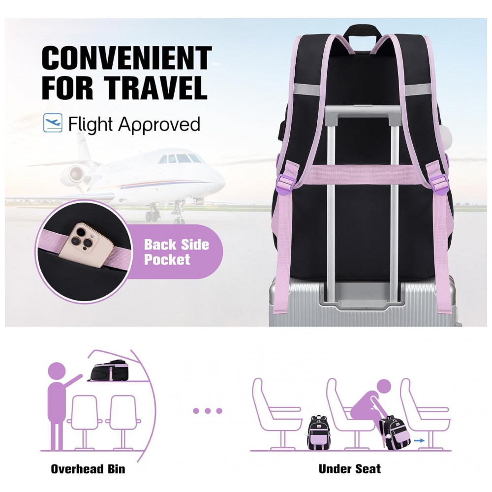 Produzida em poliéster premium leve e resistente à água, a mochila conta com alças em formato S acolchoadas com espuma respirável para aliviar a pressão nos ombros, além de tira traseira para acoplar em malas de rodinhas. O modelo possui porta USB externo com cabo interno (power bank não incluído), bolso antifurto nas costas, dois bolsos frontais com zíper, dois bolsos laterais para garrafa/guarda-chuva e organização interna com bolsos e compartimento para tablet.
