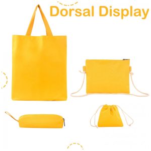 O conjunto é composto por mochila principal, bolsa de mão, bolsa tiracolo, estojo e pequena bolsa para itens miúdos, atendendo às principais necessidades de transporte em ambiente escolar e em deslocamentos curtos. O material de nylon leve apresenta resistência ao uso cotidiano e superfície com característica impermeável, enquanto o fechamento em zíper foi projetado para operação contínua.