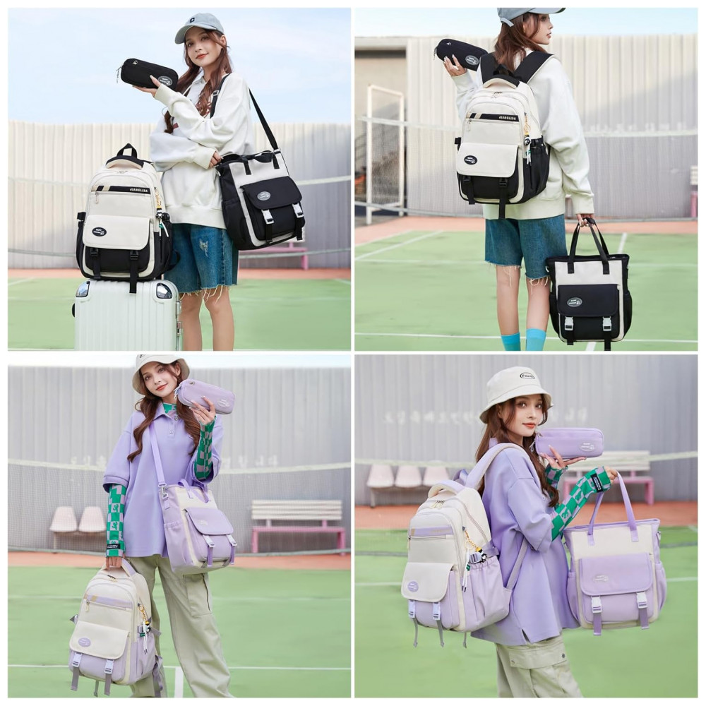 Mochila escolar Mildame em conjunto de 3 peças, desenvolvida para uso diário de crianças e adolescentes em ambiente escolar e em atividades de lazer. O tecido sintético leve, resistente à água e ao rasgo, ajuda a proteger cadernos e materiais, enquanto o formato retangular permite acomodar livros e cadernos de tamanho padrão com altura aproximada de 46 cm.