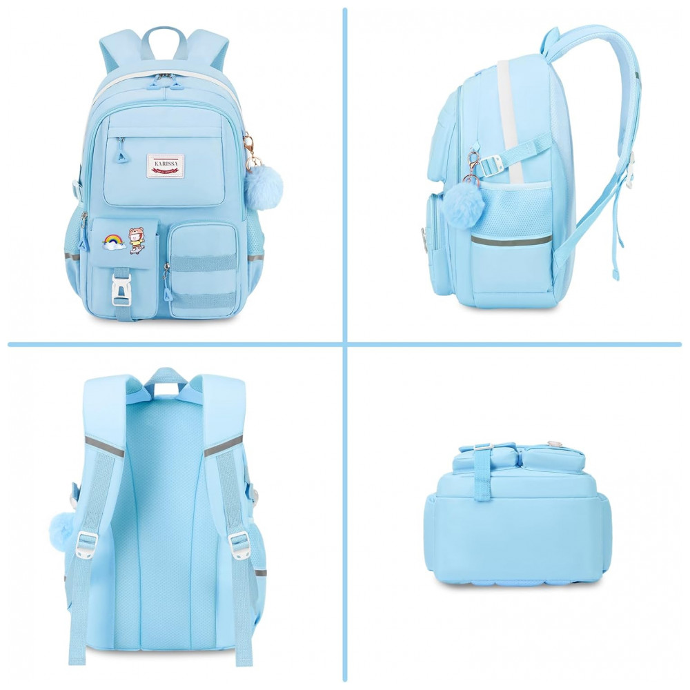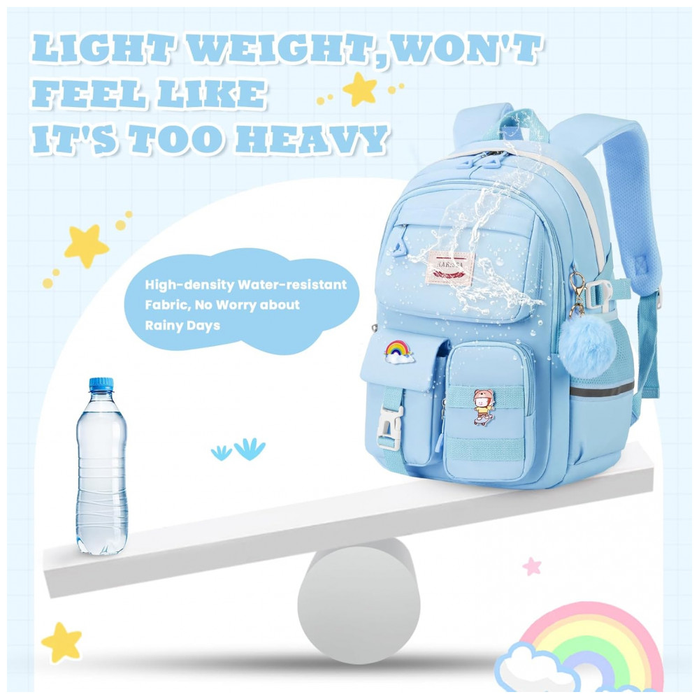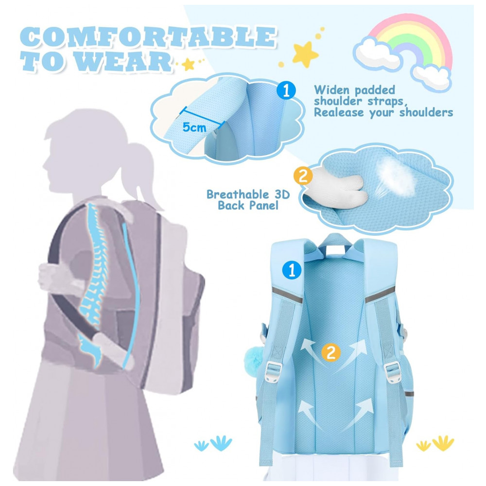 Confeccionada em poliéster de alta gramatura com acabamento resistente à água e rasgos, a mochila apresenta costuras reforçadas, zíperes de abertura suave e fivelas antideslizantes nas alças. As alças de ombro acolchoadas e reguláveis, em conjunto com painel traseiro com espuma, seguem desenho ergonômico voltado à redução da carga sobre os ombros, atendendo faixas etárias aproximadas de 6 a 14 anos em rotinas escolares, passeios, compras e viagens curtas.