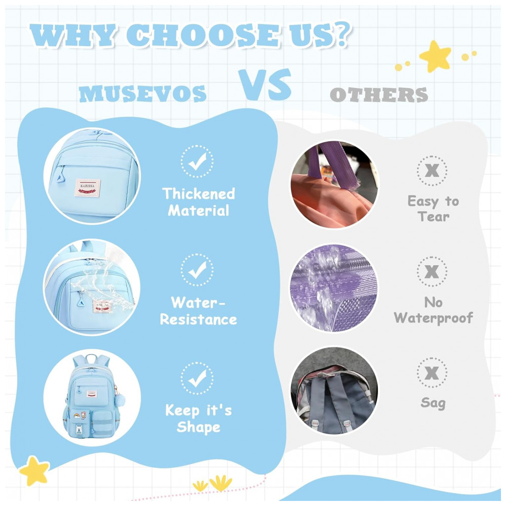 Mochila escolar MUSEVOS com múltiplos bolsos para meninas estrutura ergonômica