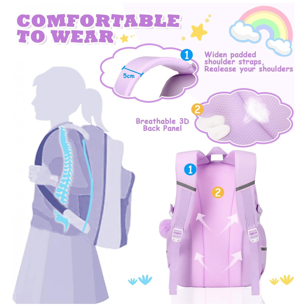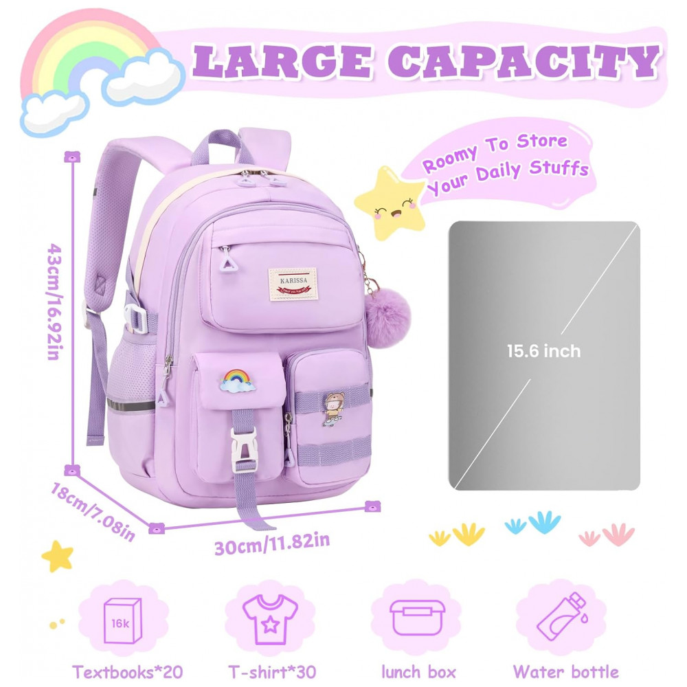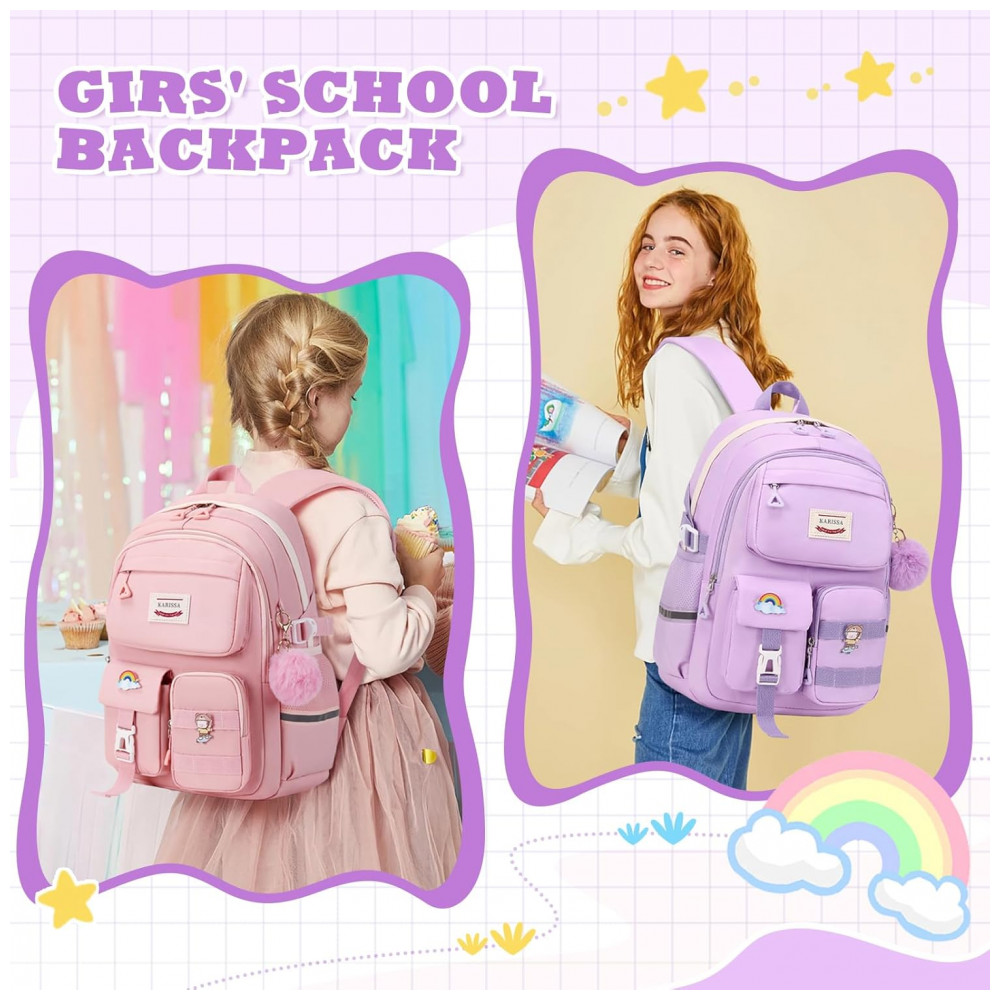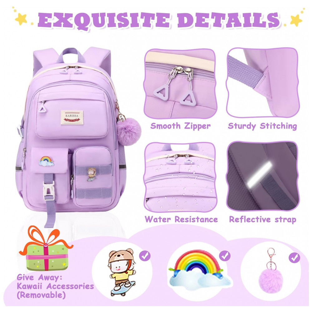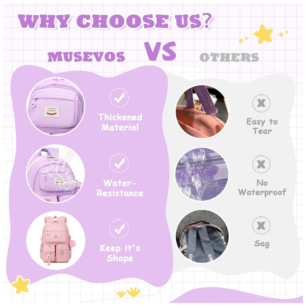 Mochila escolar MUSEVOS roxa kawaii com múltiplos bolsos para meninas