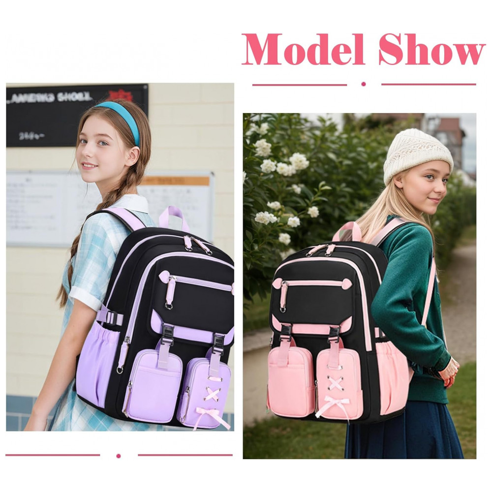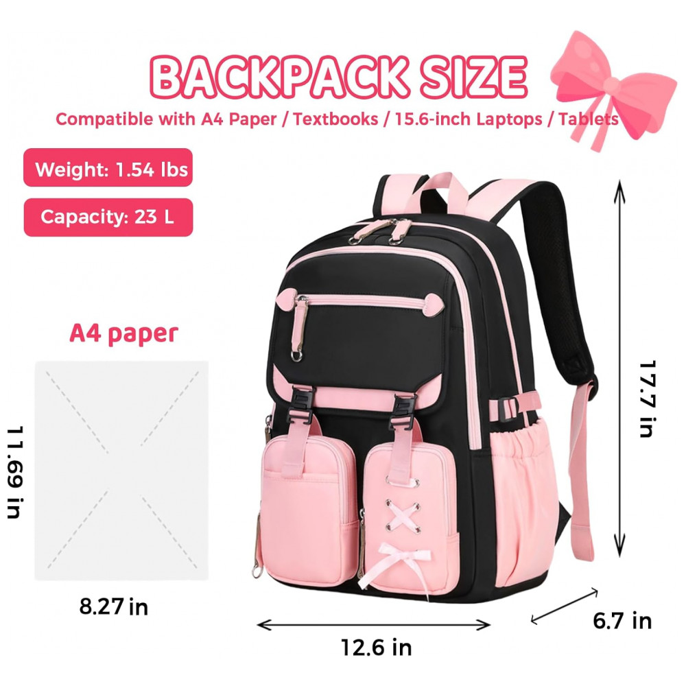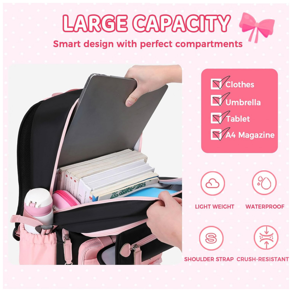 Mochila escolar TYHOTULY infantil juvenil rosa laço decorativo grande capacidade 23 L