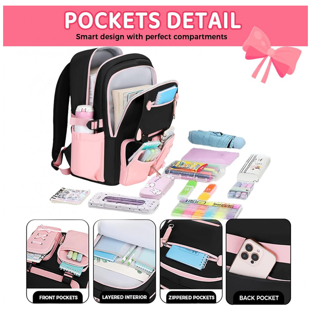 Modelo: Mochila escolar juvenil com laço decorativo 23 L