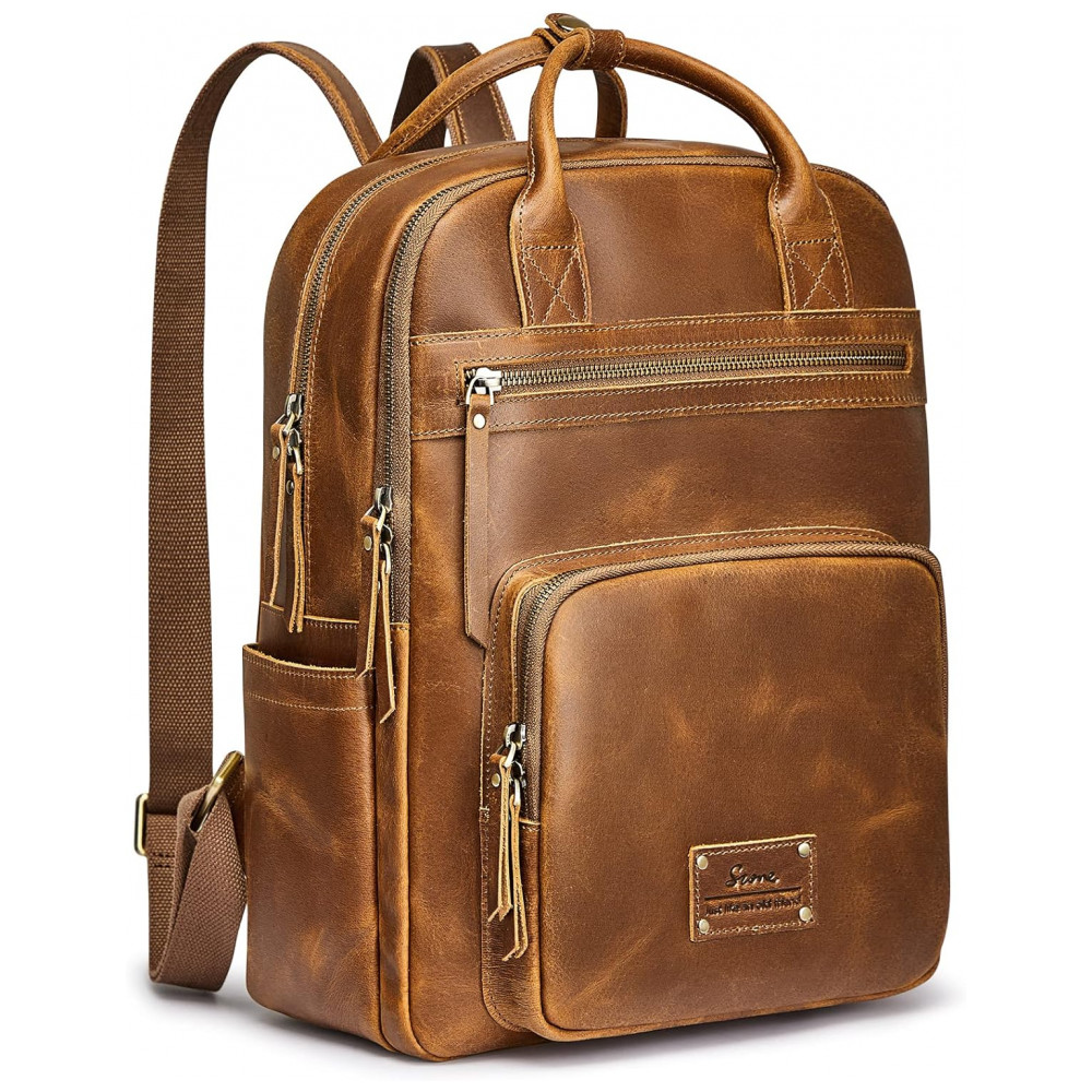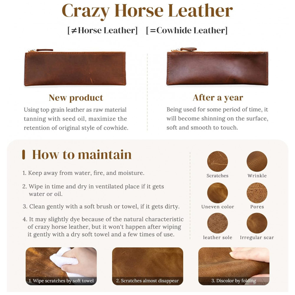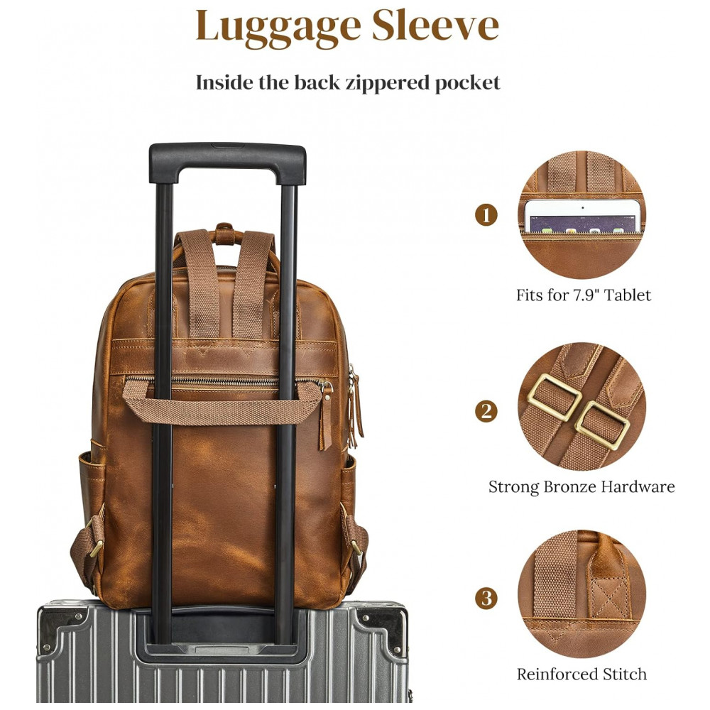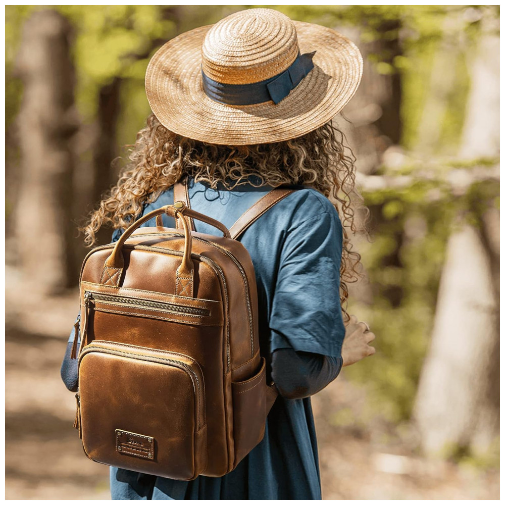 COURO COMPLETOEsta mochila é totalmente feita de couro de cavalo louco incluindo a parte traseira, os arranhões desordenados naturais mostram mais retrô e rústico. E nós engrossamos o couro para reforçar toda a bolsa para maior durabilidade, então esta mochila de couro seria um pouco mais pesada 1,49 kg do que uma bolsa de náilon ou lona.