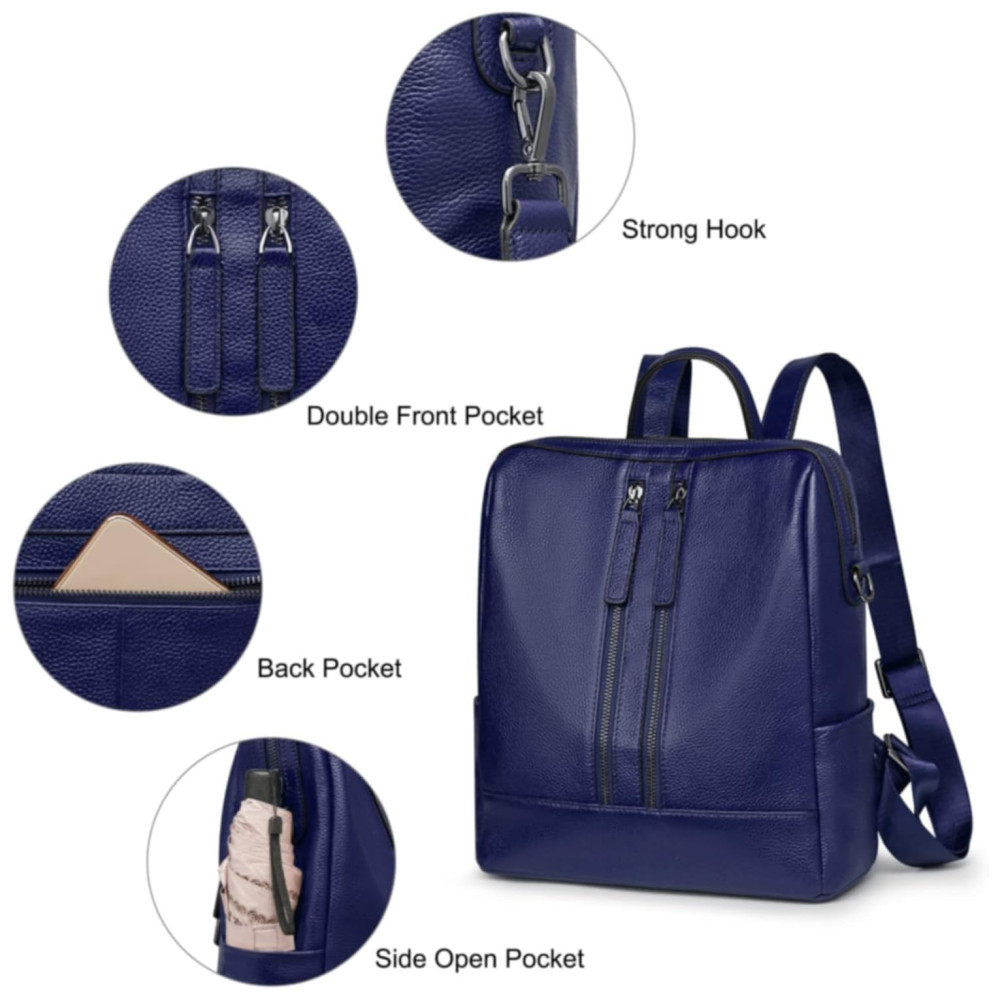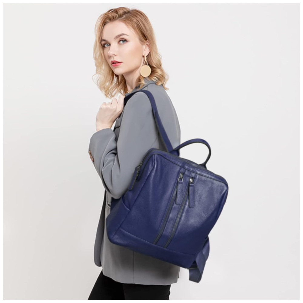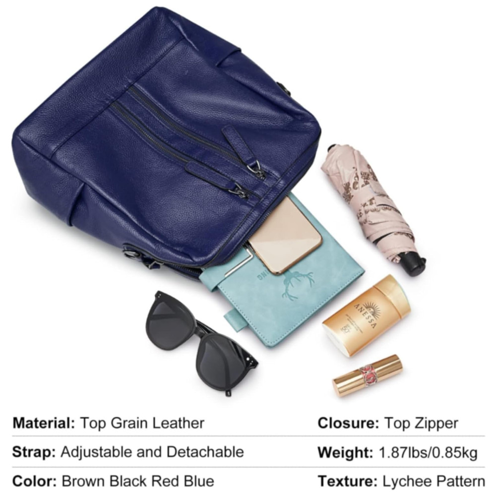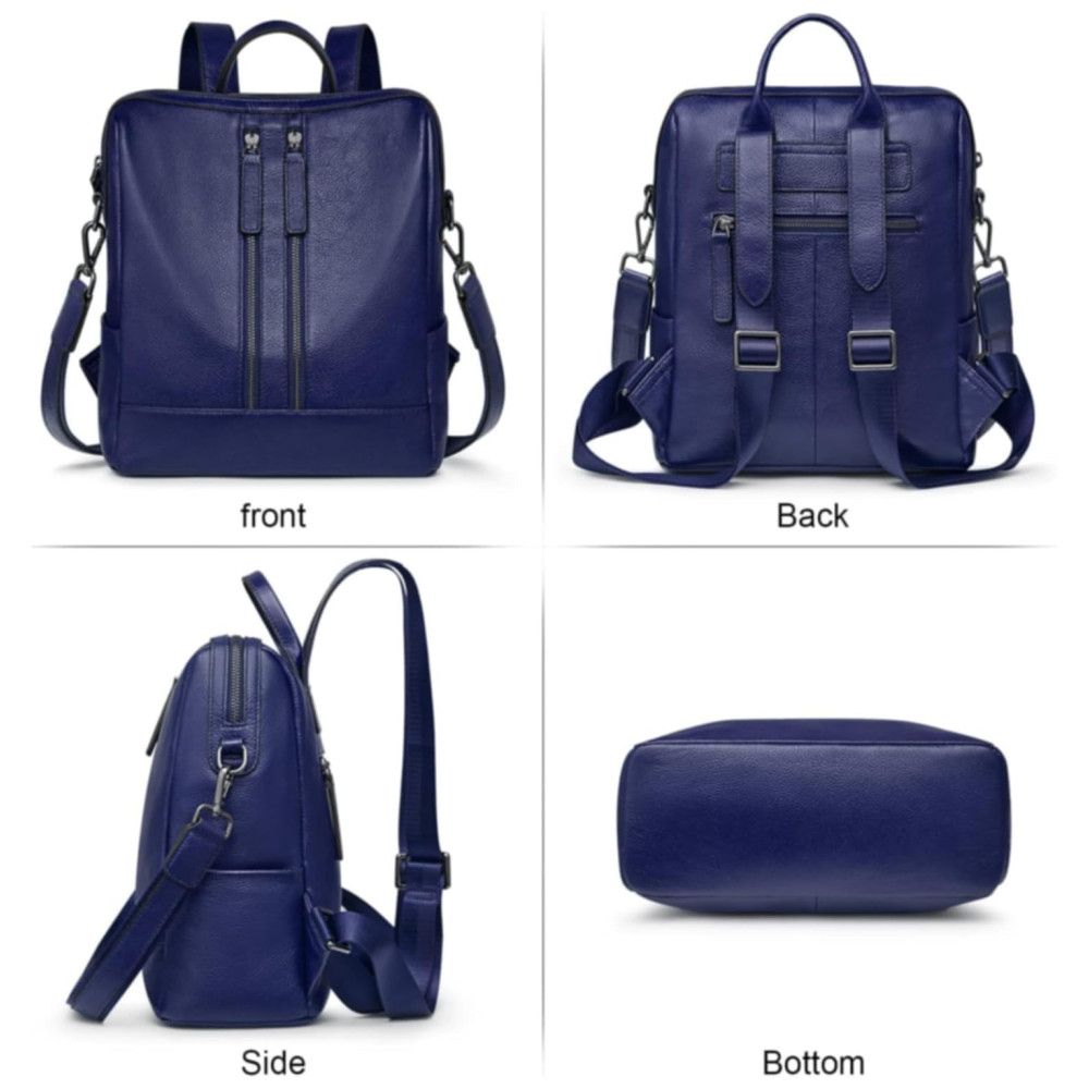 Mochila Feminina de Couro Conversível para Bolsa de Ombro S ZONE Azul