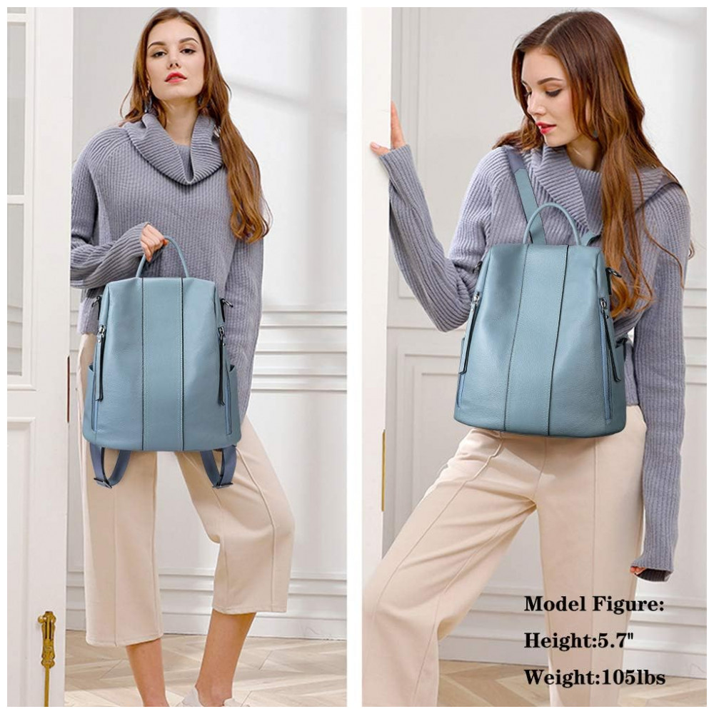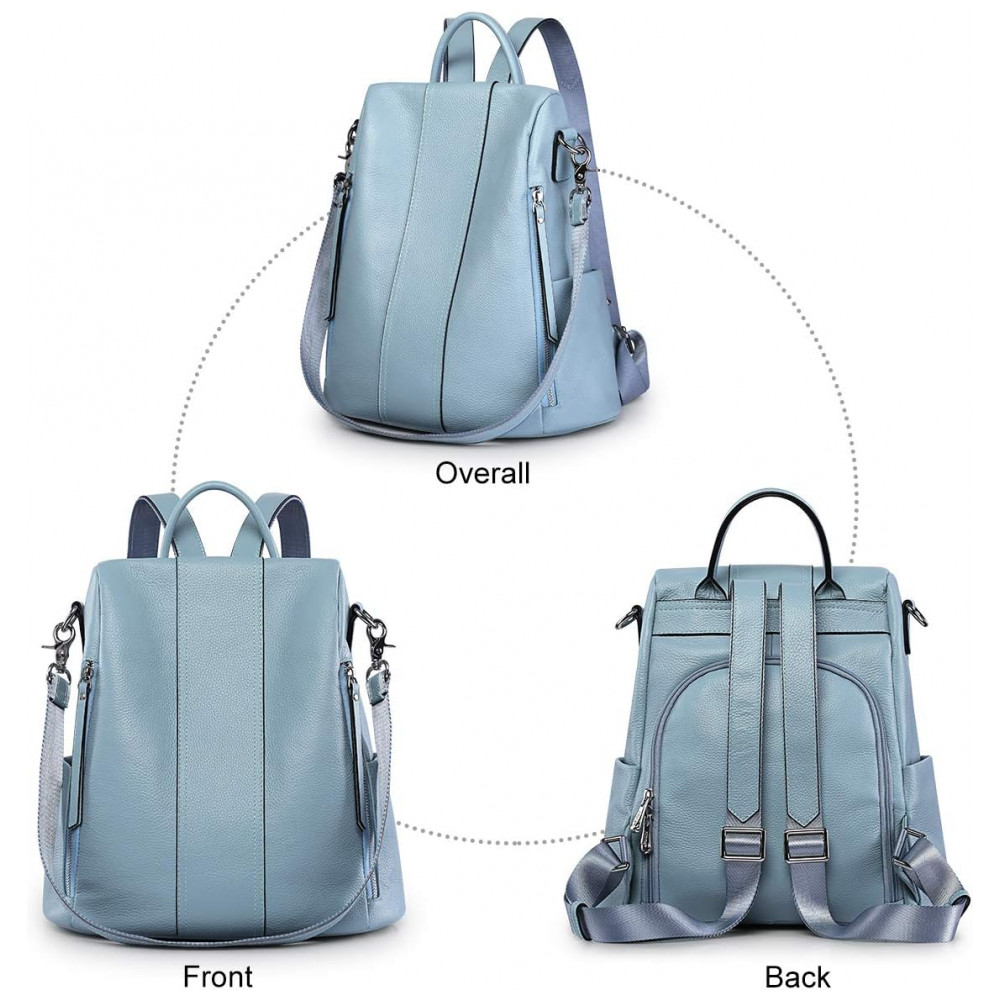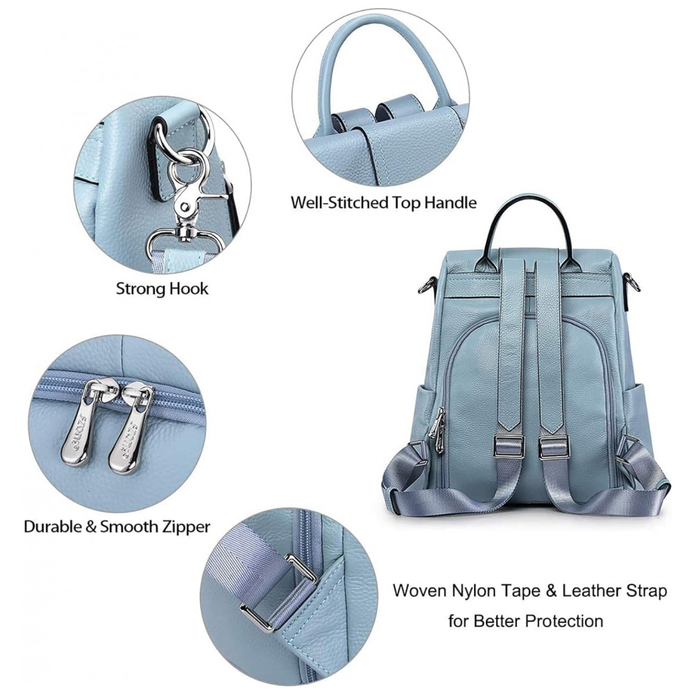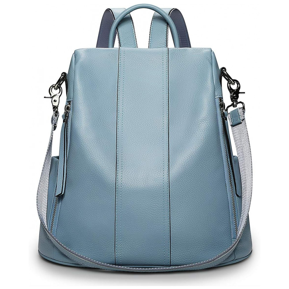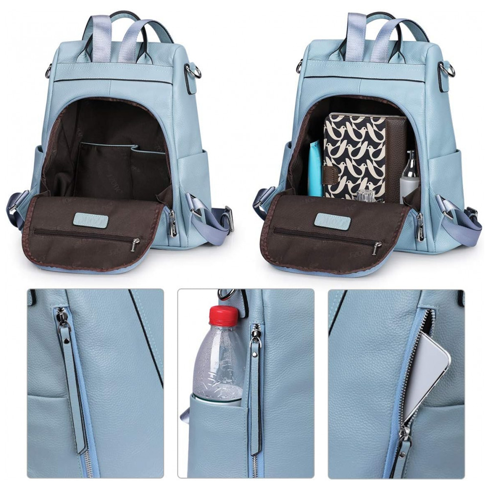 Mochila Feminina de Couro Conversível para Bolsa de Ombro S ZONE Azul Claro
